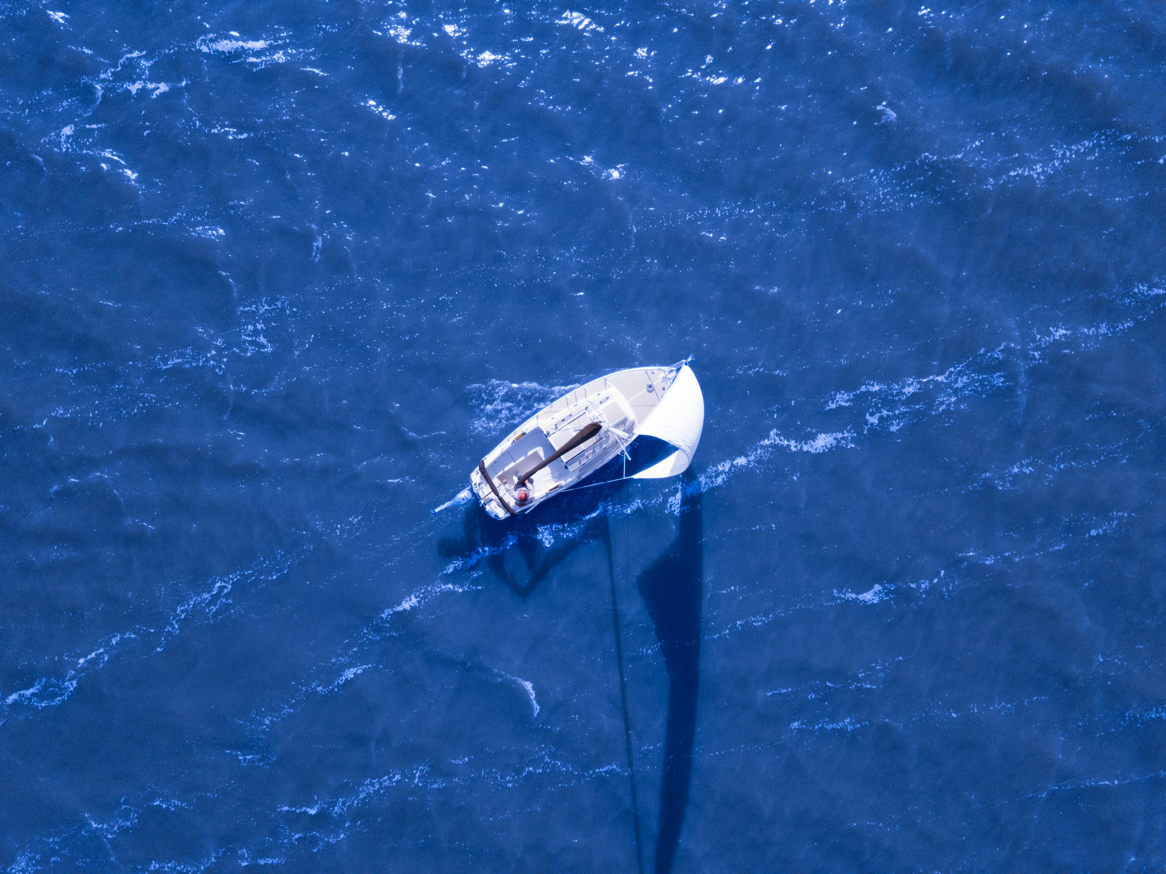 6. Aerial View Of Boat Sailing On Blue Ocean 49Ers Google Meet Background