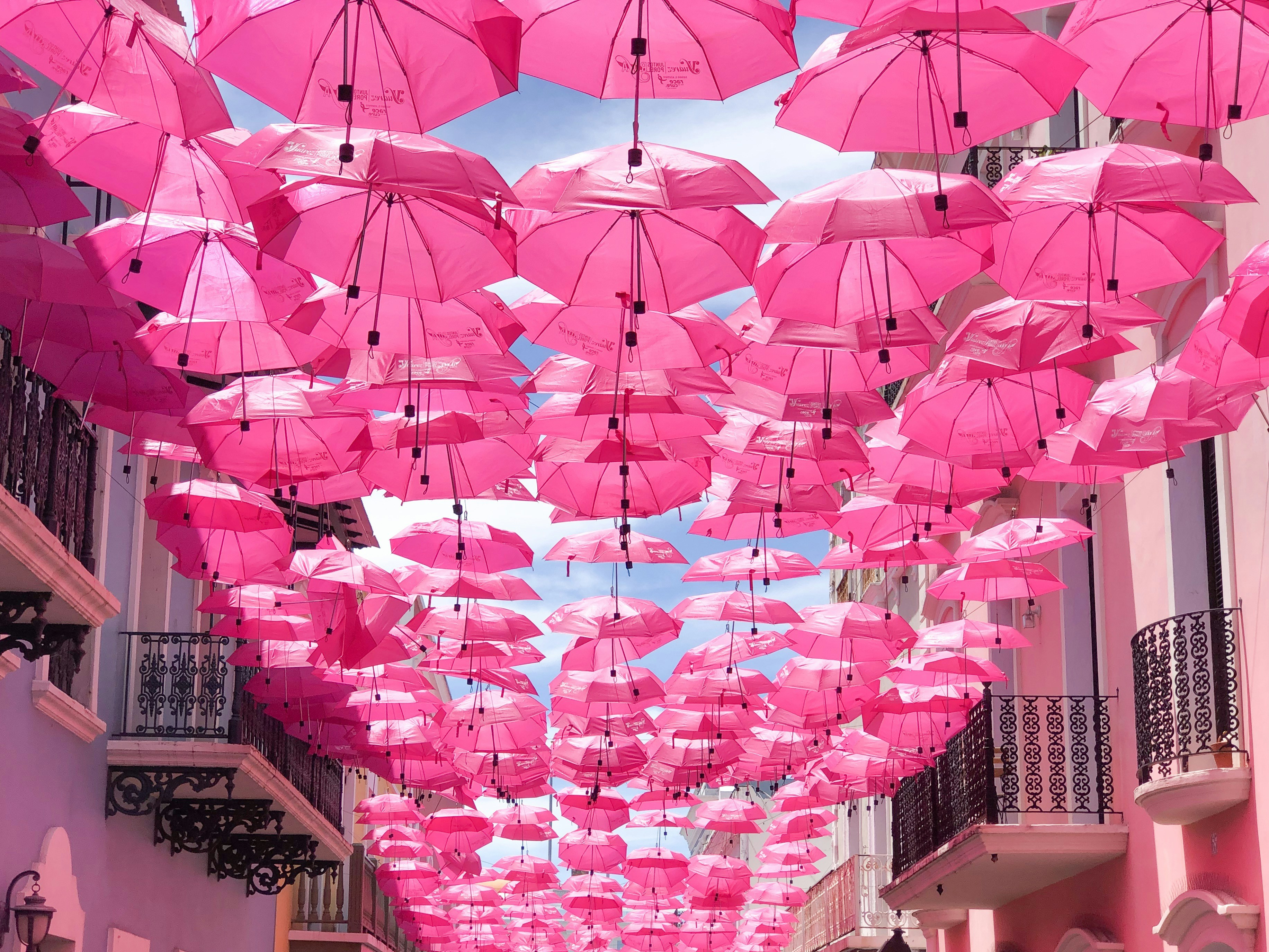 hanged pink umbrellas pink google meet background