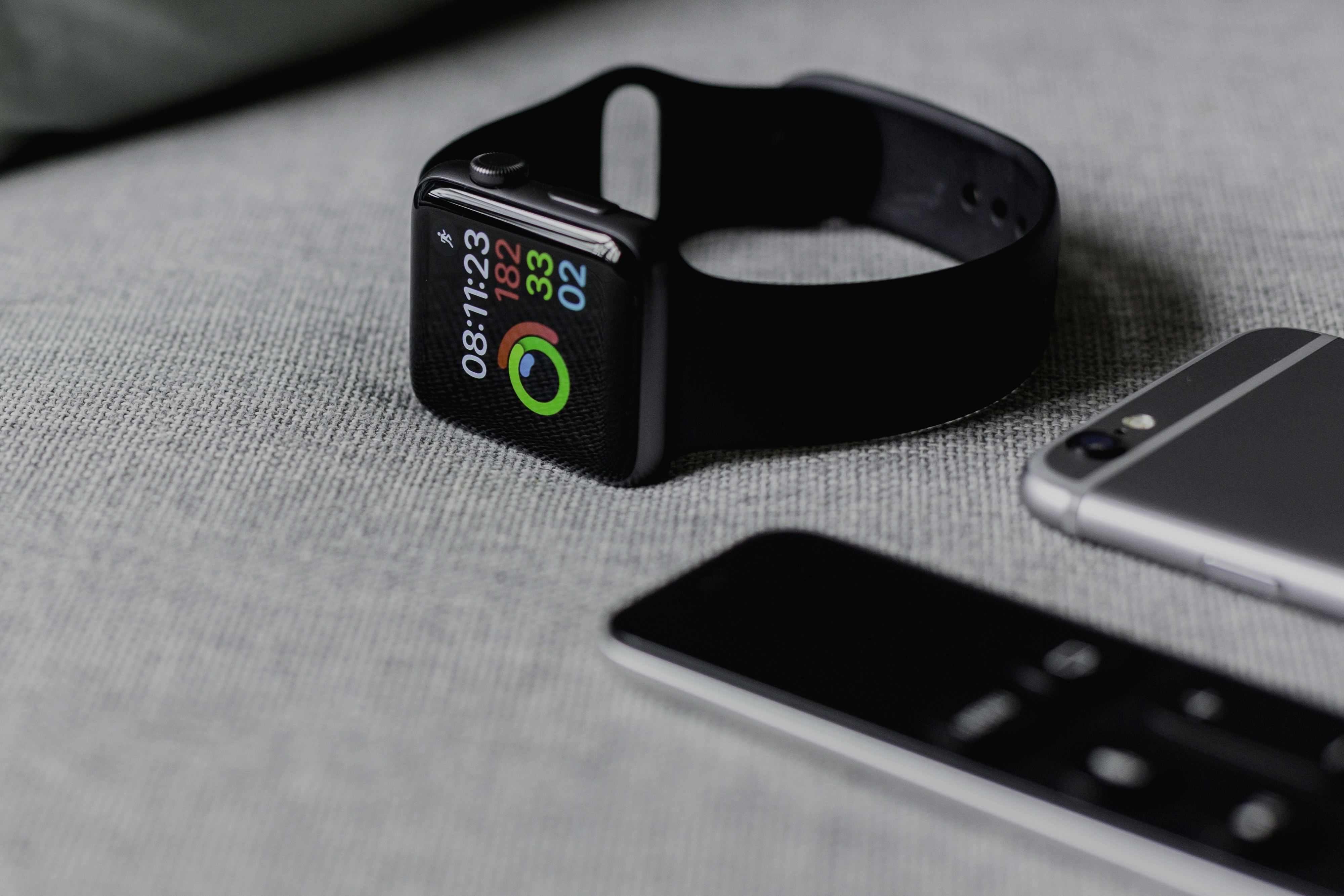 2. Black Smart Watch With Black Strap Apple Watch Teams Background