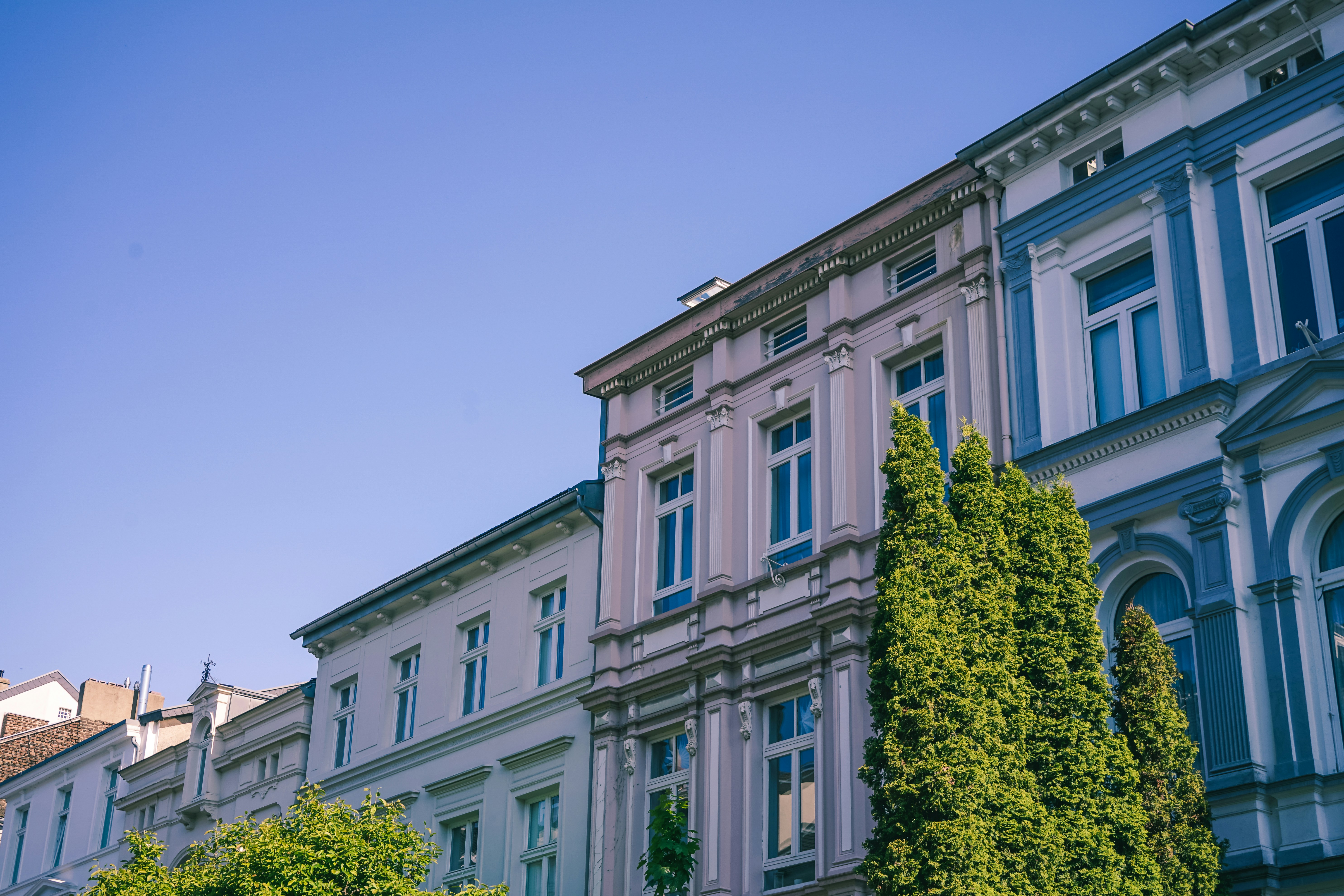 5. White Concrete Building With Green Trees In Front Under Blue Sky During Daytime Art Noveau Teams Background