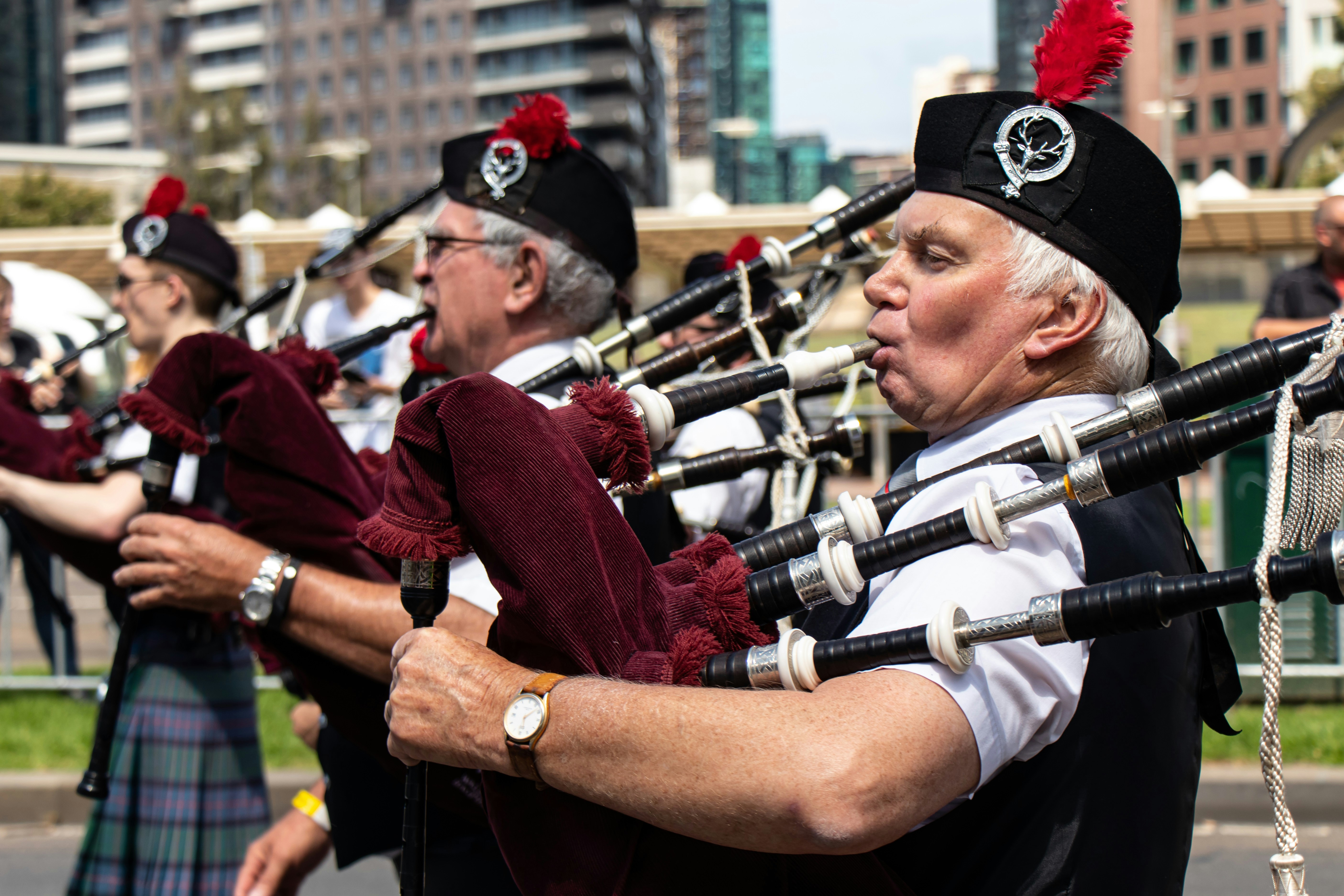 6. Close-Up Photography Of Man Playing Musical Instrument During Daytime Bagpipe Teams Background