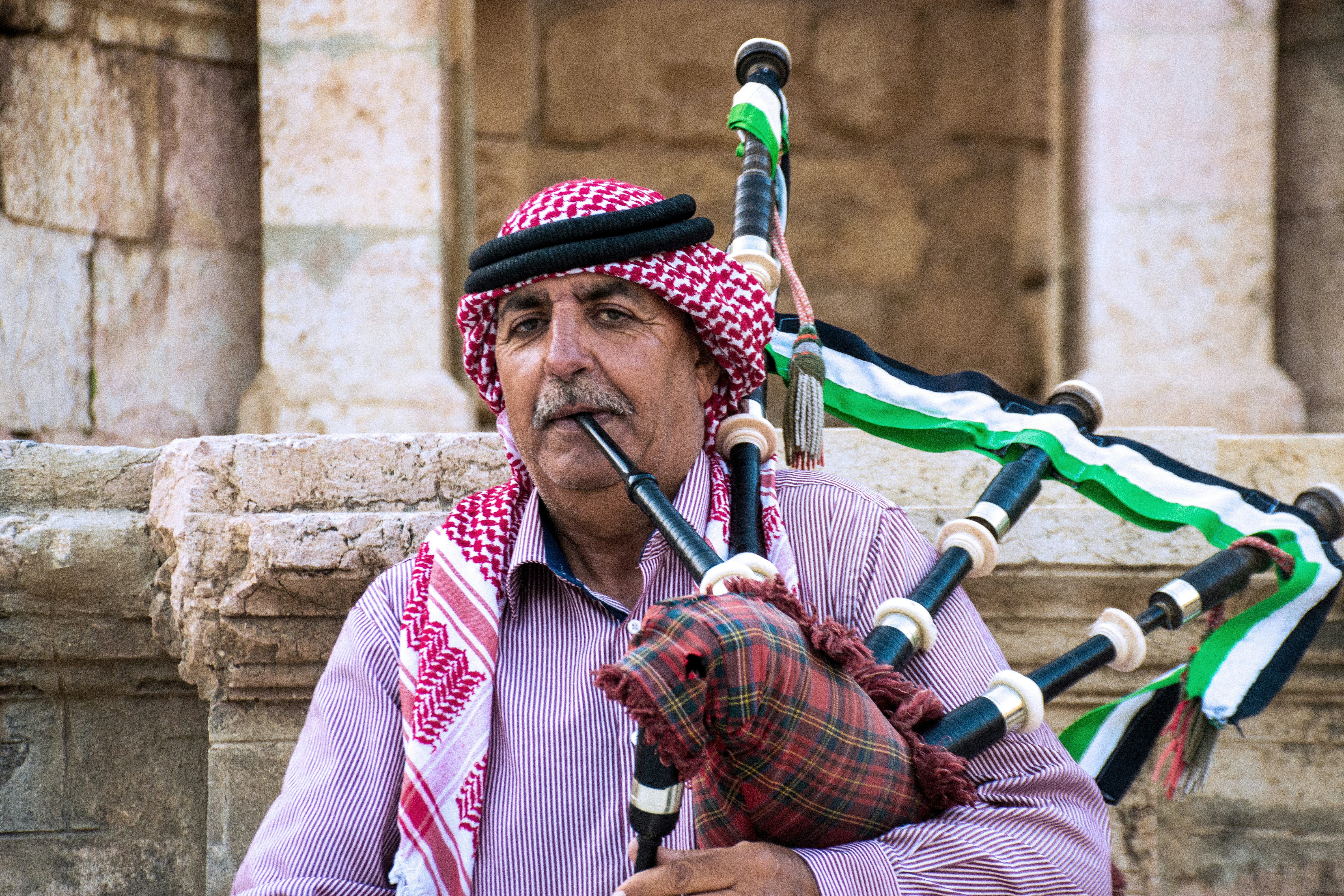 3. Man In Red And White Long Sleeve Shirt Playing Flute Bagpipe Teams Background