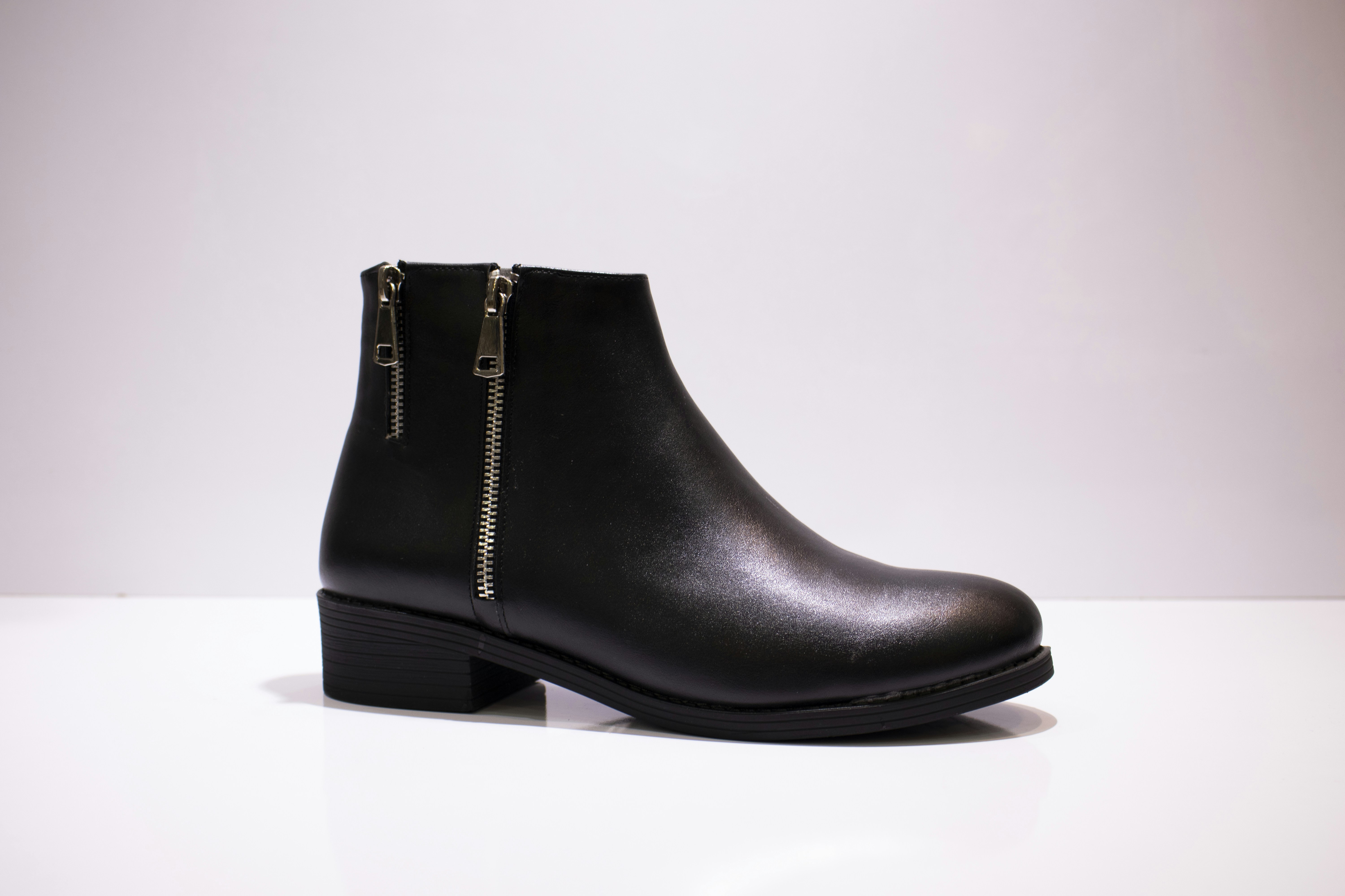 9. Black Leather Boot On White Surface Boots Teams Background