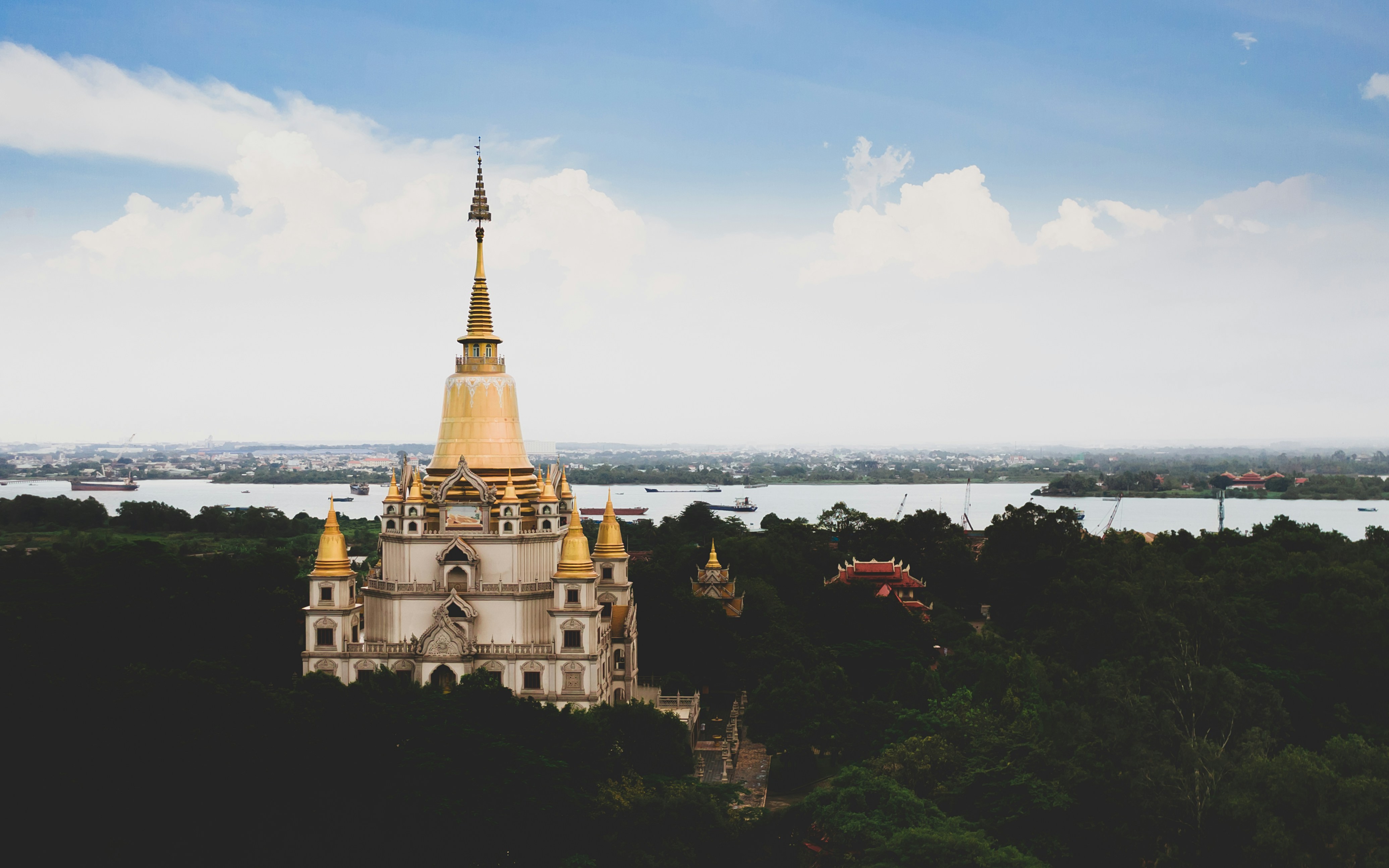 7. Body Of Water Near Green Trees Under Blue Sky During Daytime Buddhist Temple Teams Background