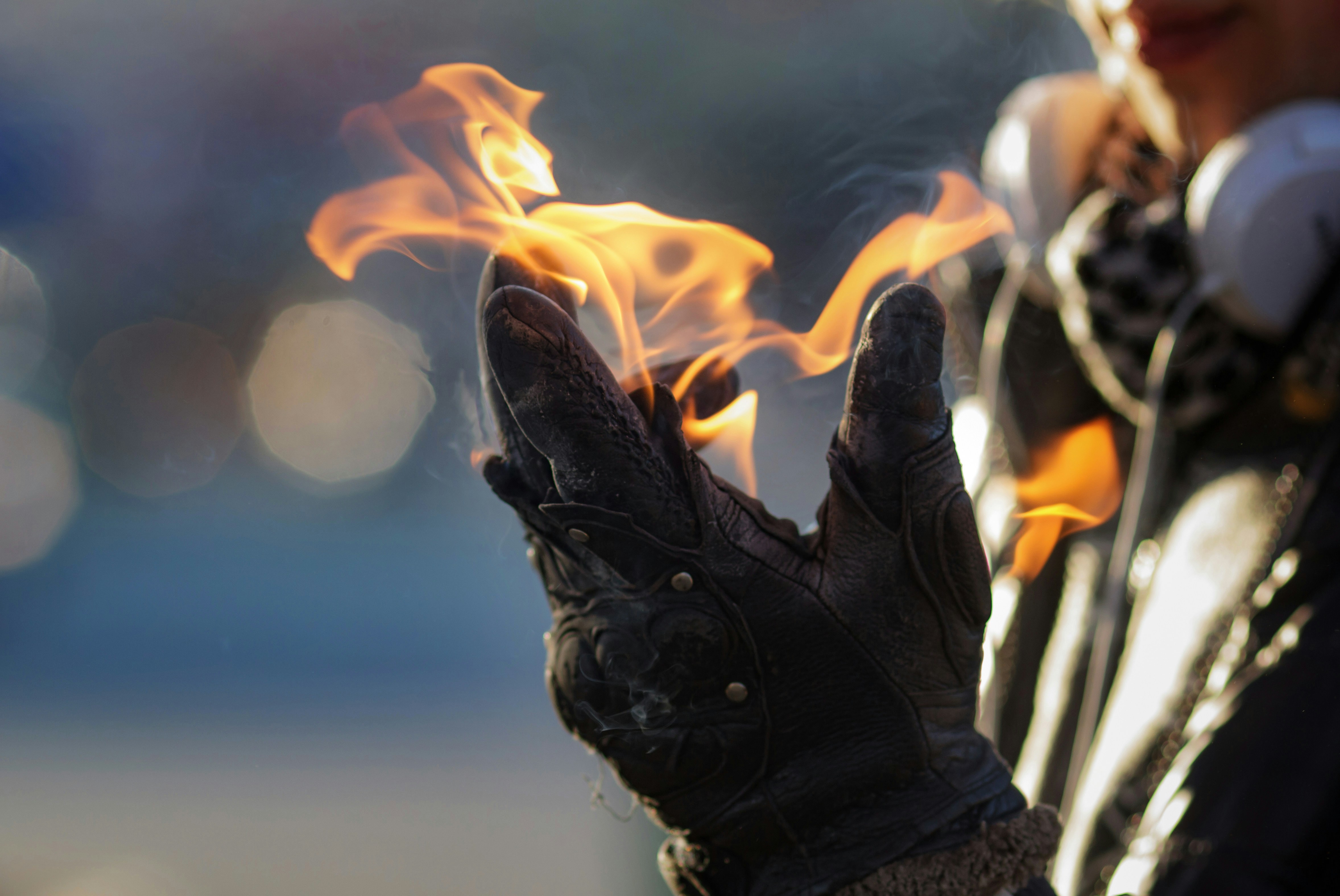 6. Fire In Black Leather Boot Burning Man Teams Background