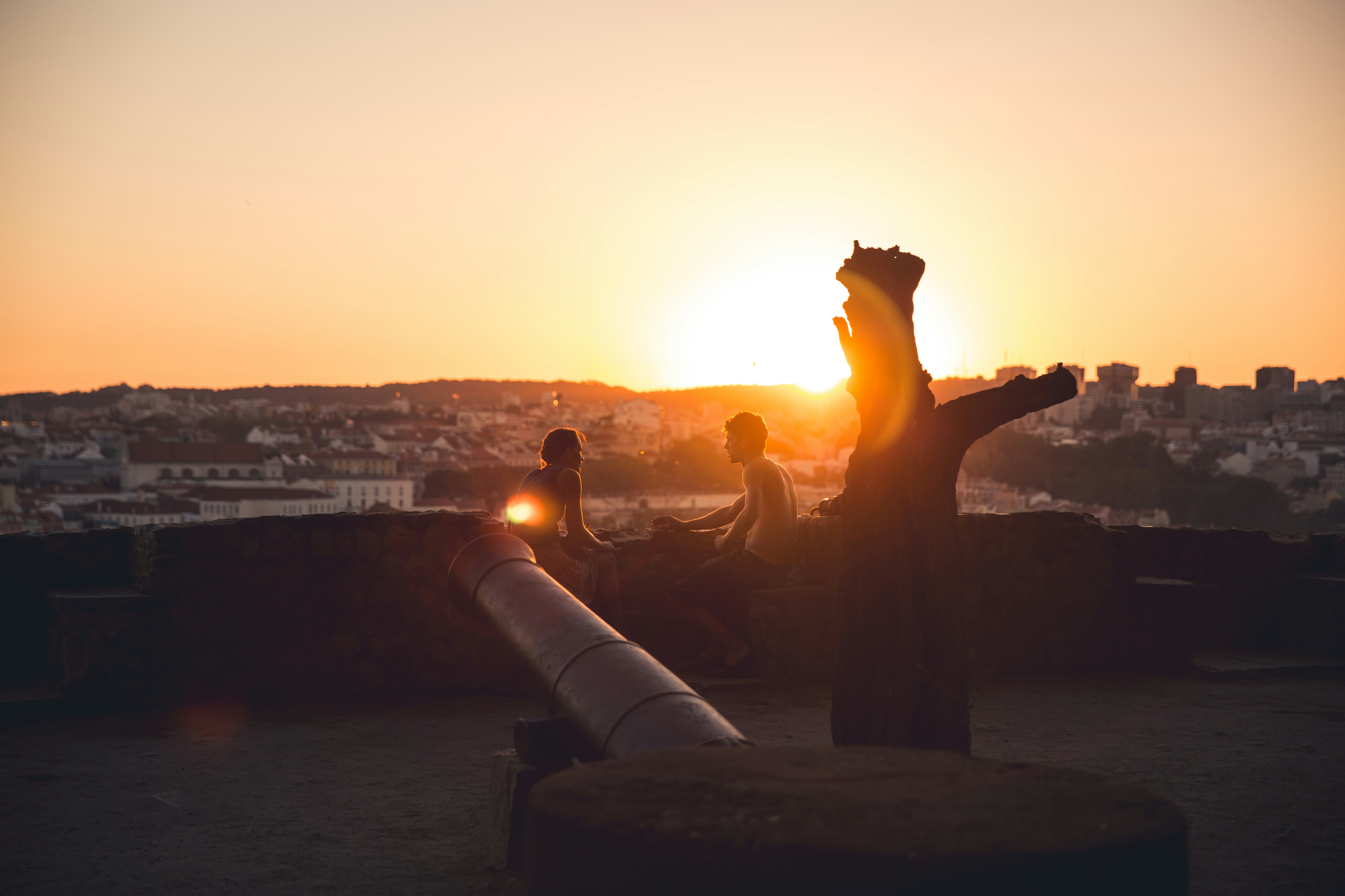 5. Man And Woman Sitting And Facing Near Concrete Fence During Golden Hour Canon Teams Background