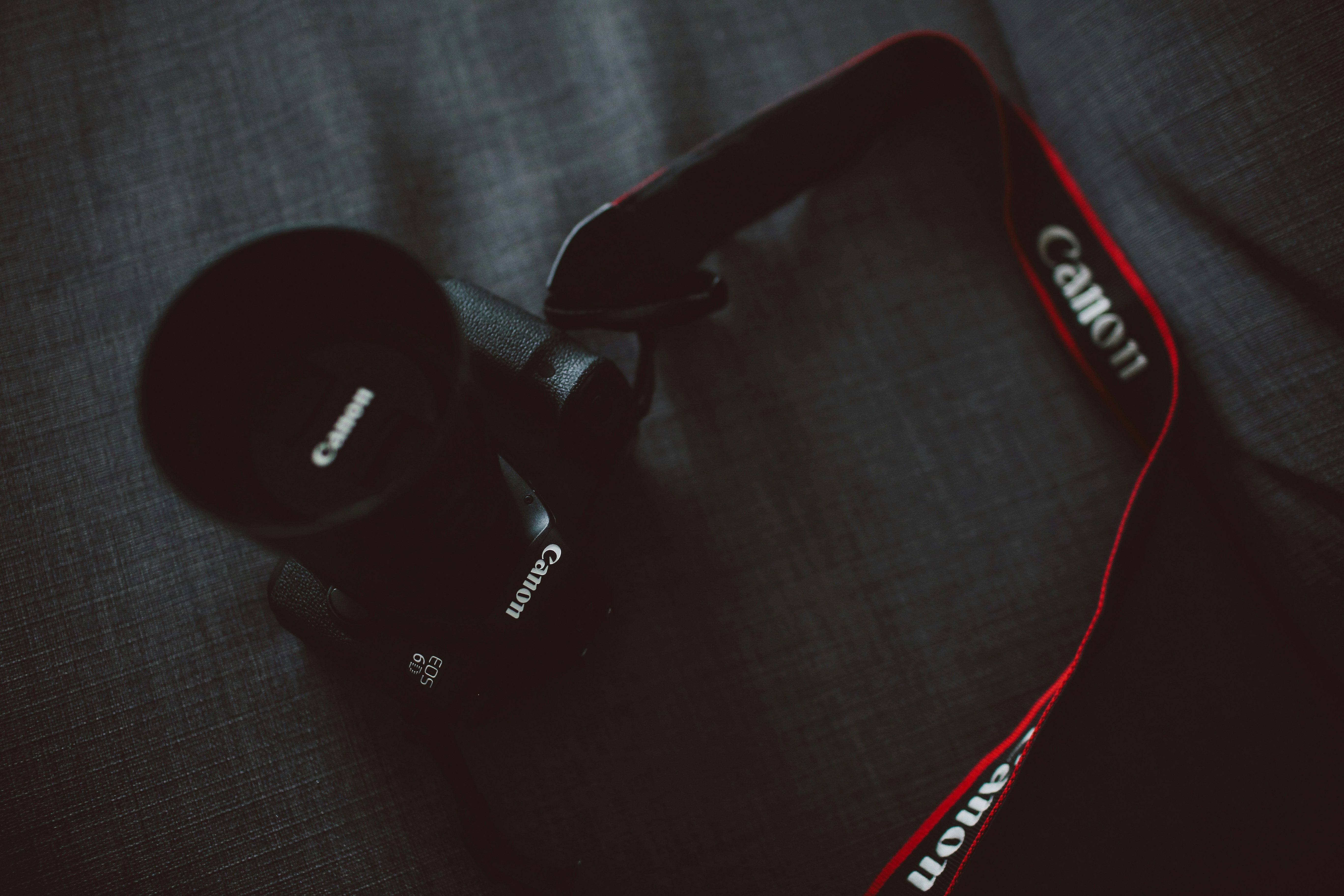 7. Black Canon Eos Dslr Camera On Gray Textile Canon Teams Background
