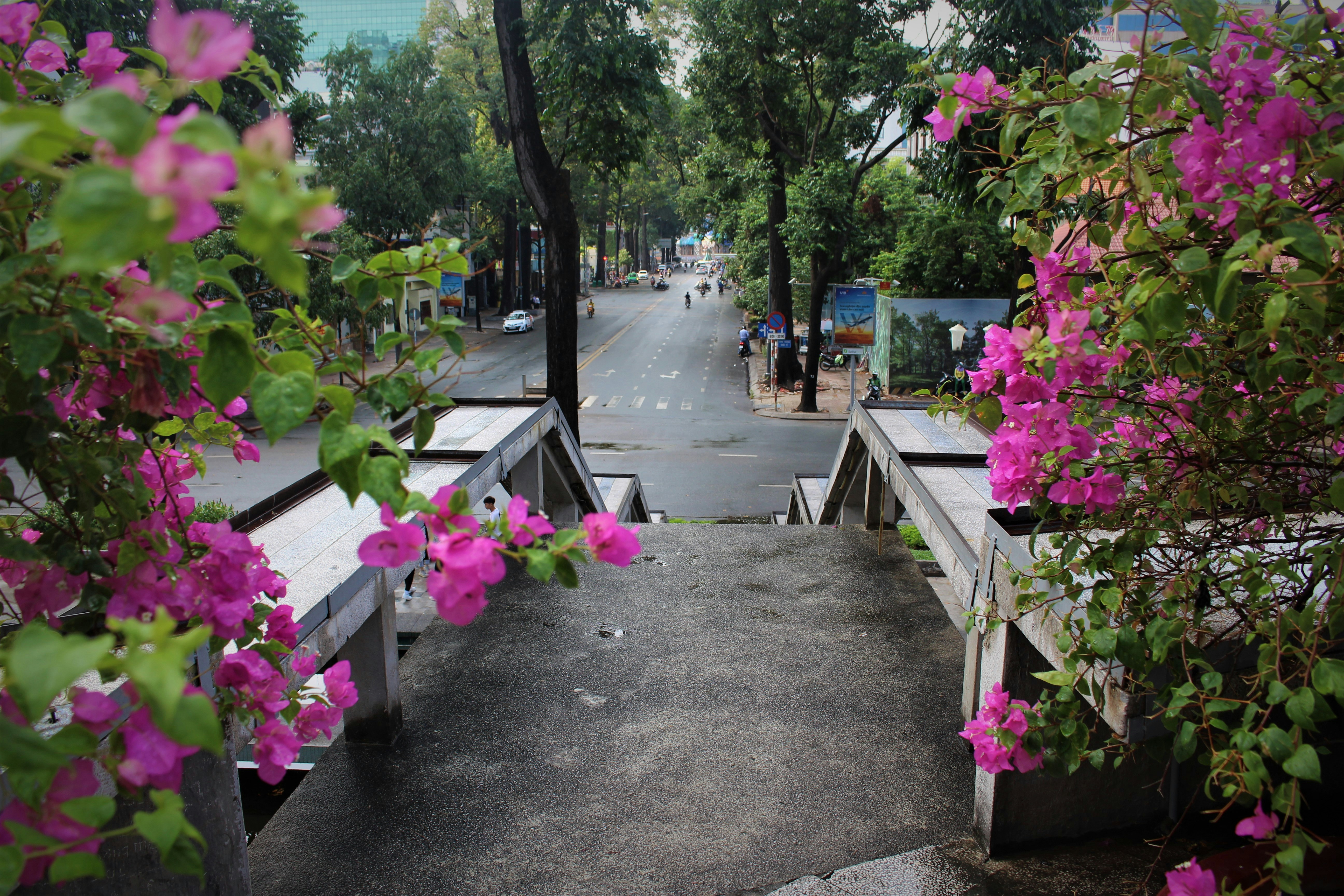 10. Pink Flowers On Gray Concrete Pathway Comic Con Teams Background