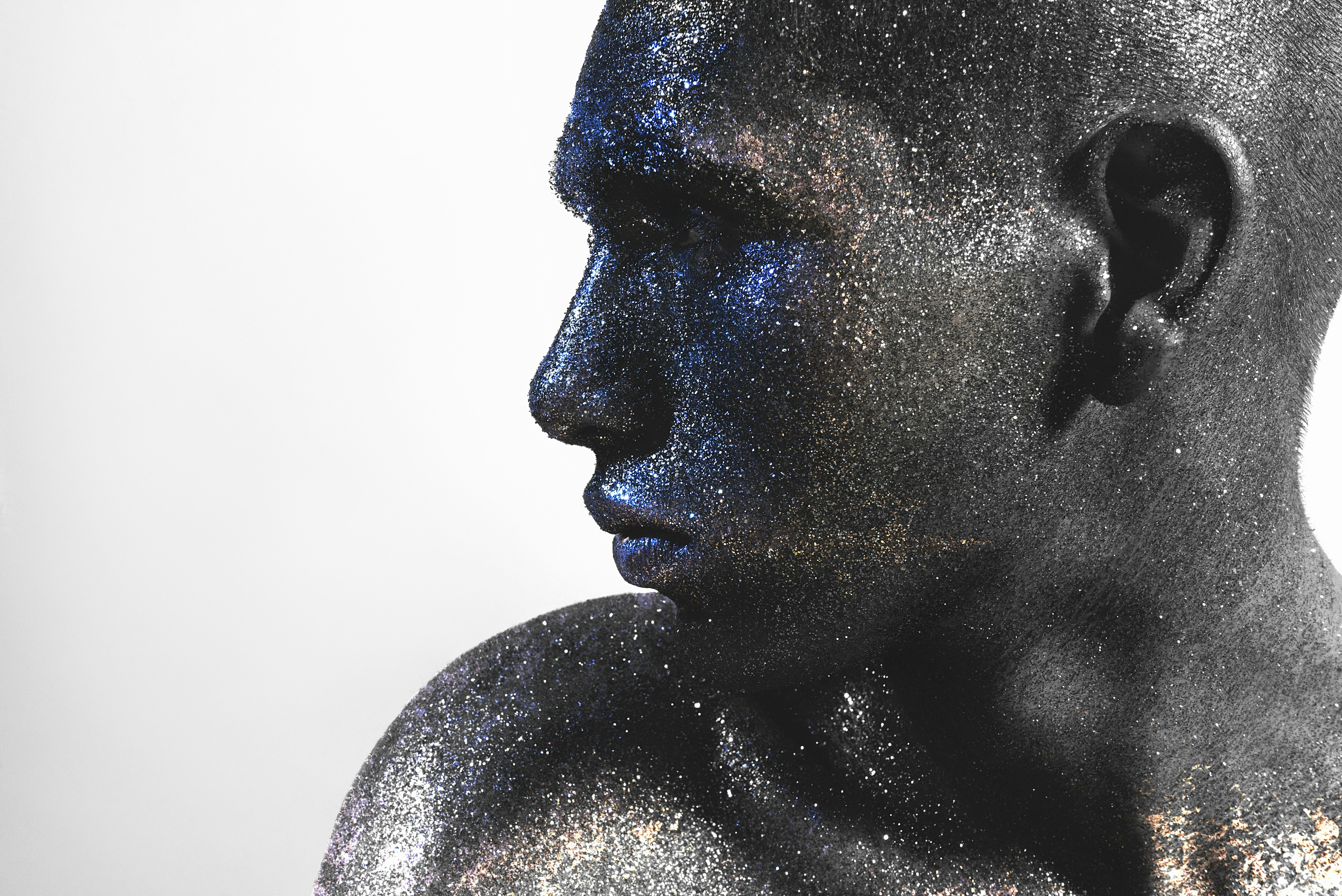 1. Mans Face With Blue Eyes Conceptual Art Teams Background