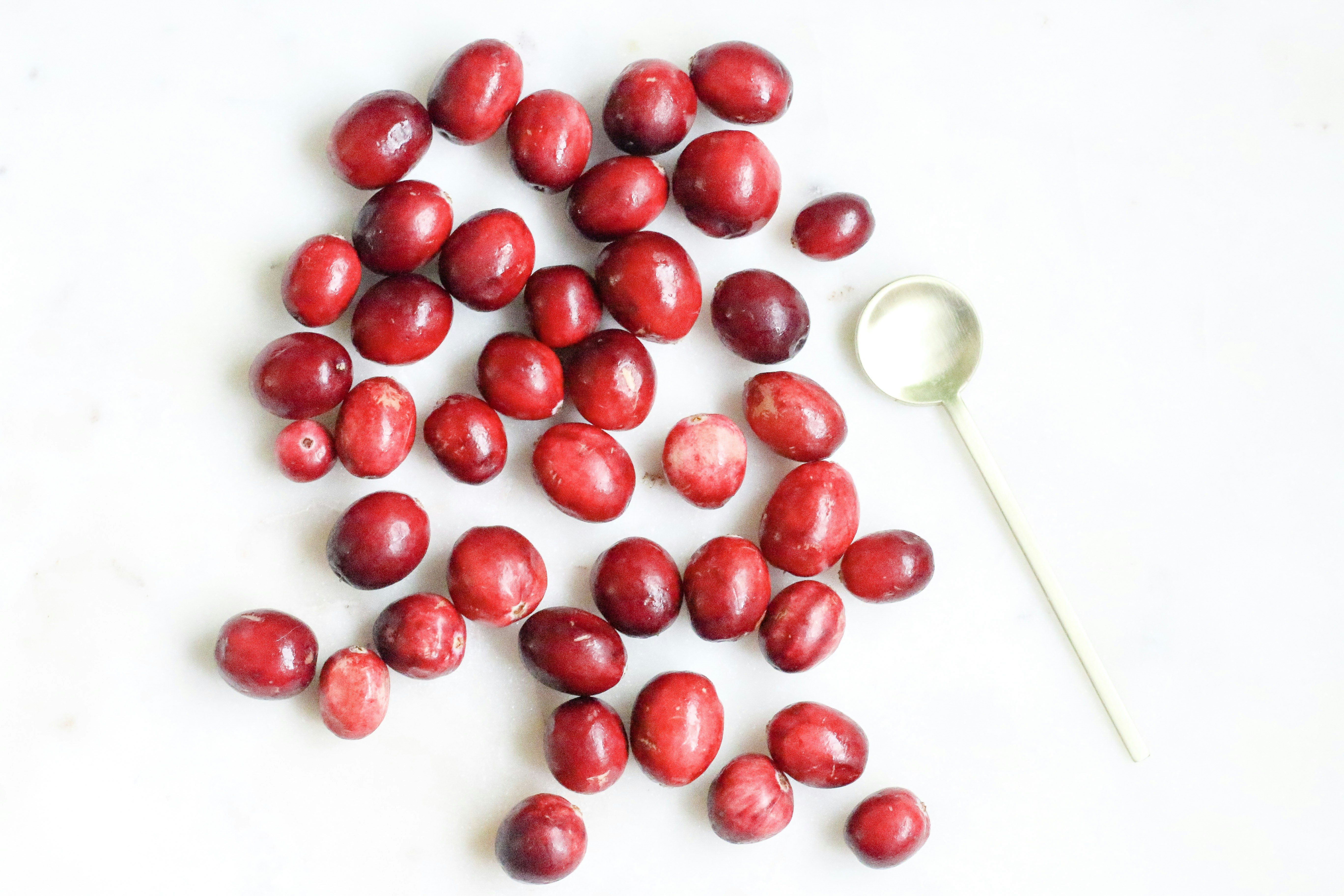 5. Red Round Fruits On White Surface Cranberry Teams Background