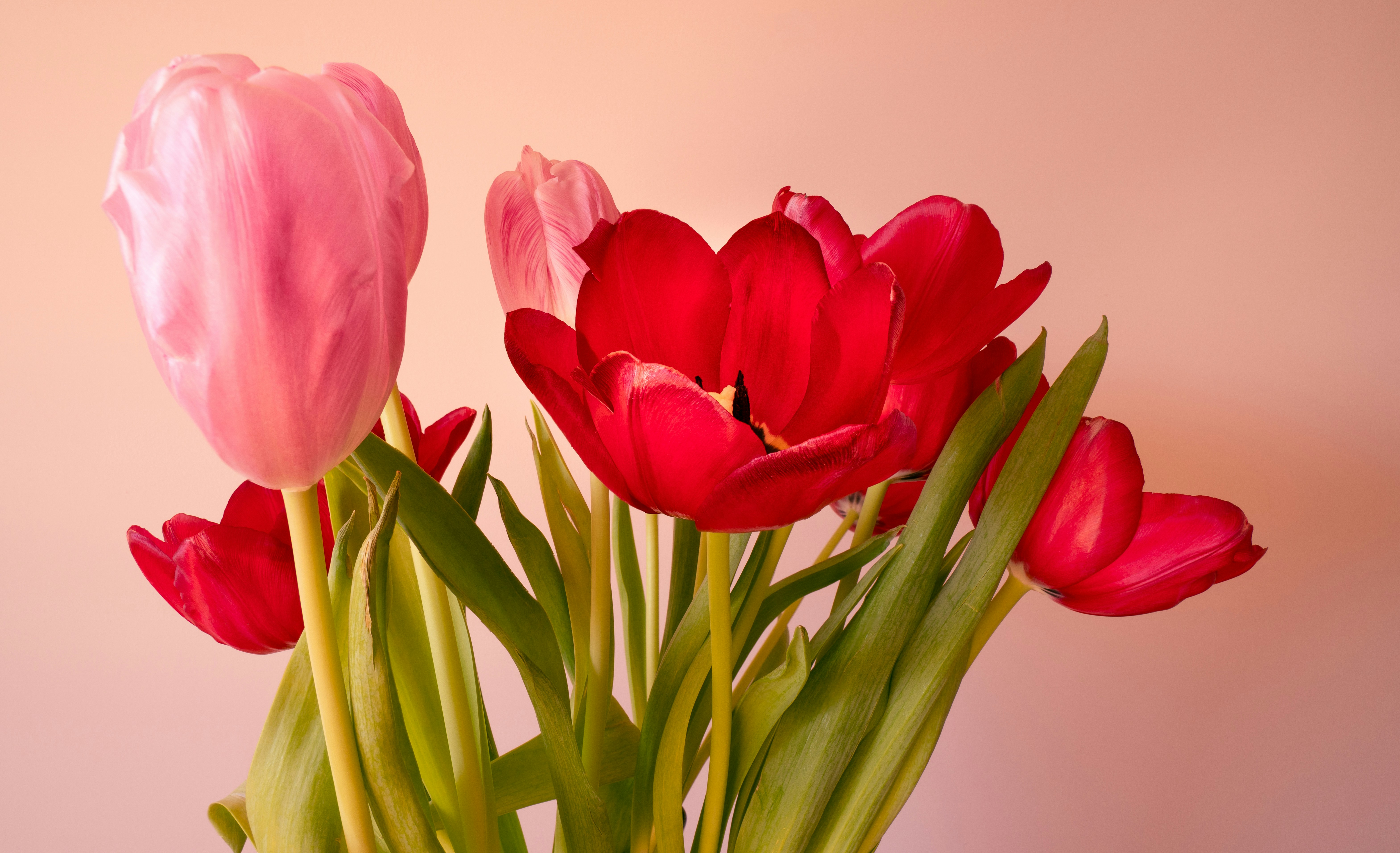 red tulips in close up photography delightful teams background