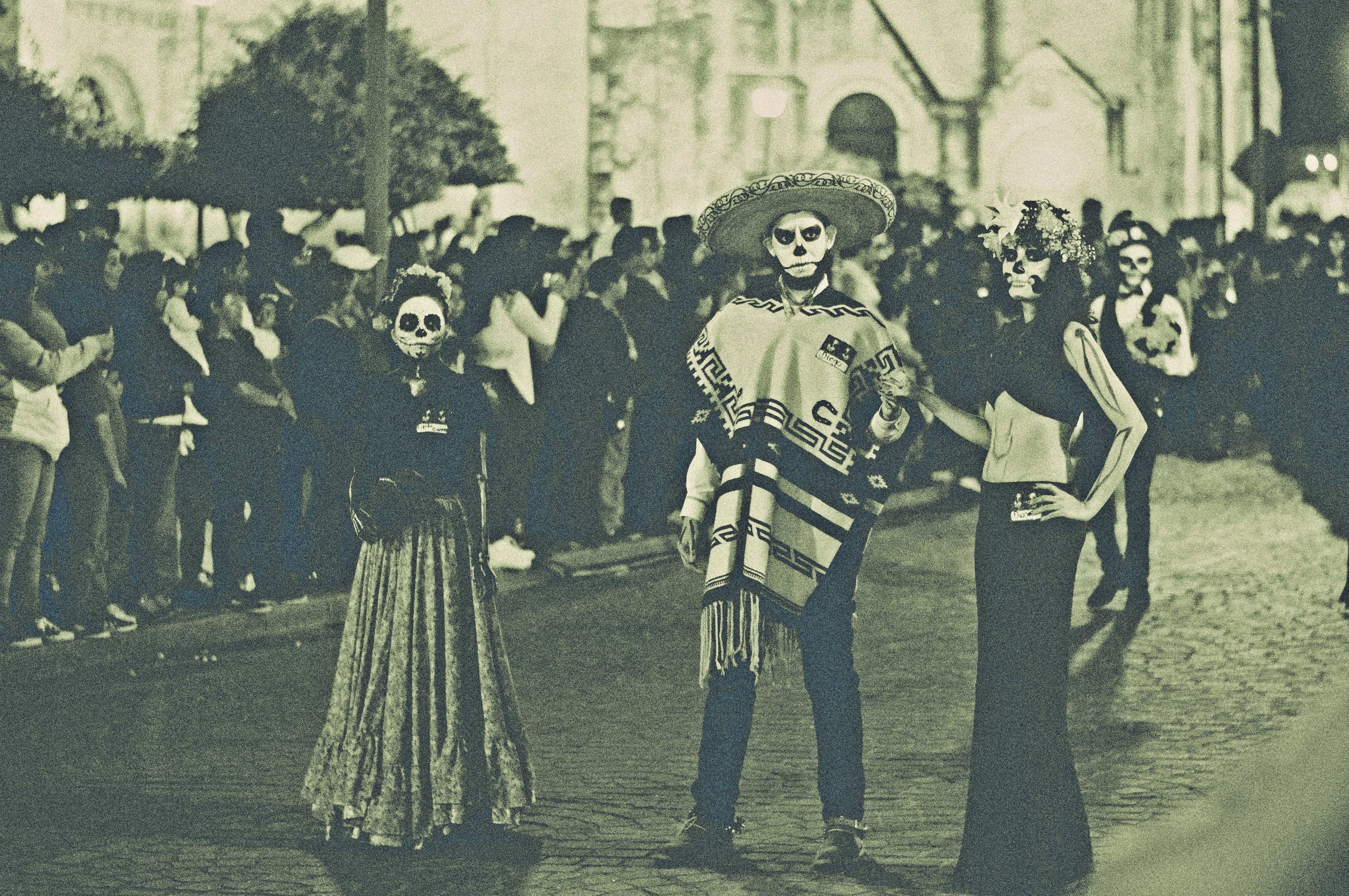 7. Three Person Standing On Street Dia De Los Muertos Teams Background