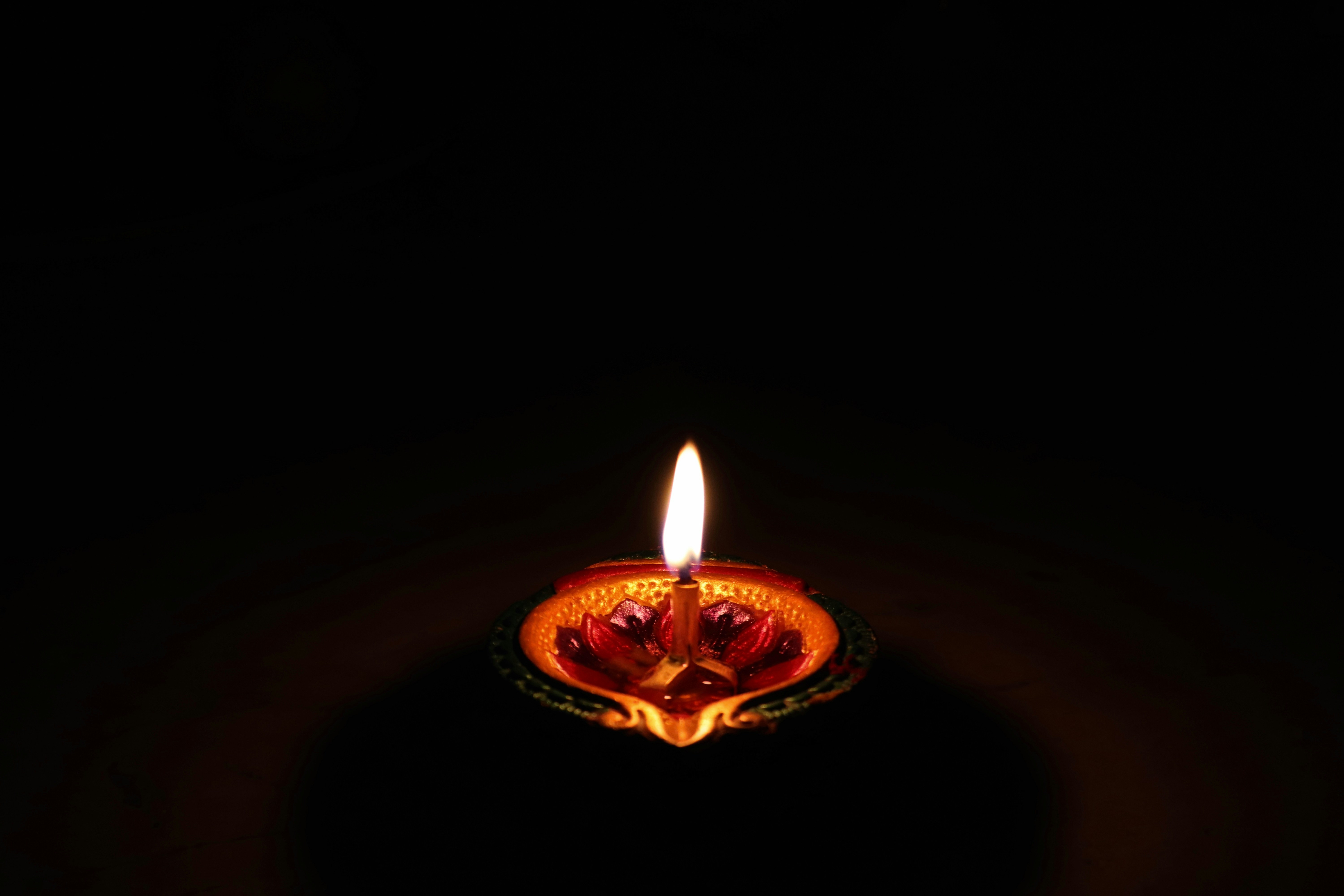 9. Red Candles Lighted On Table Diwali Teams Background
