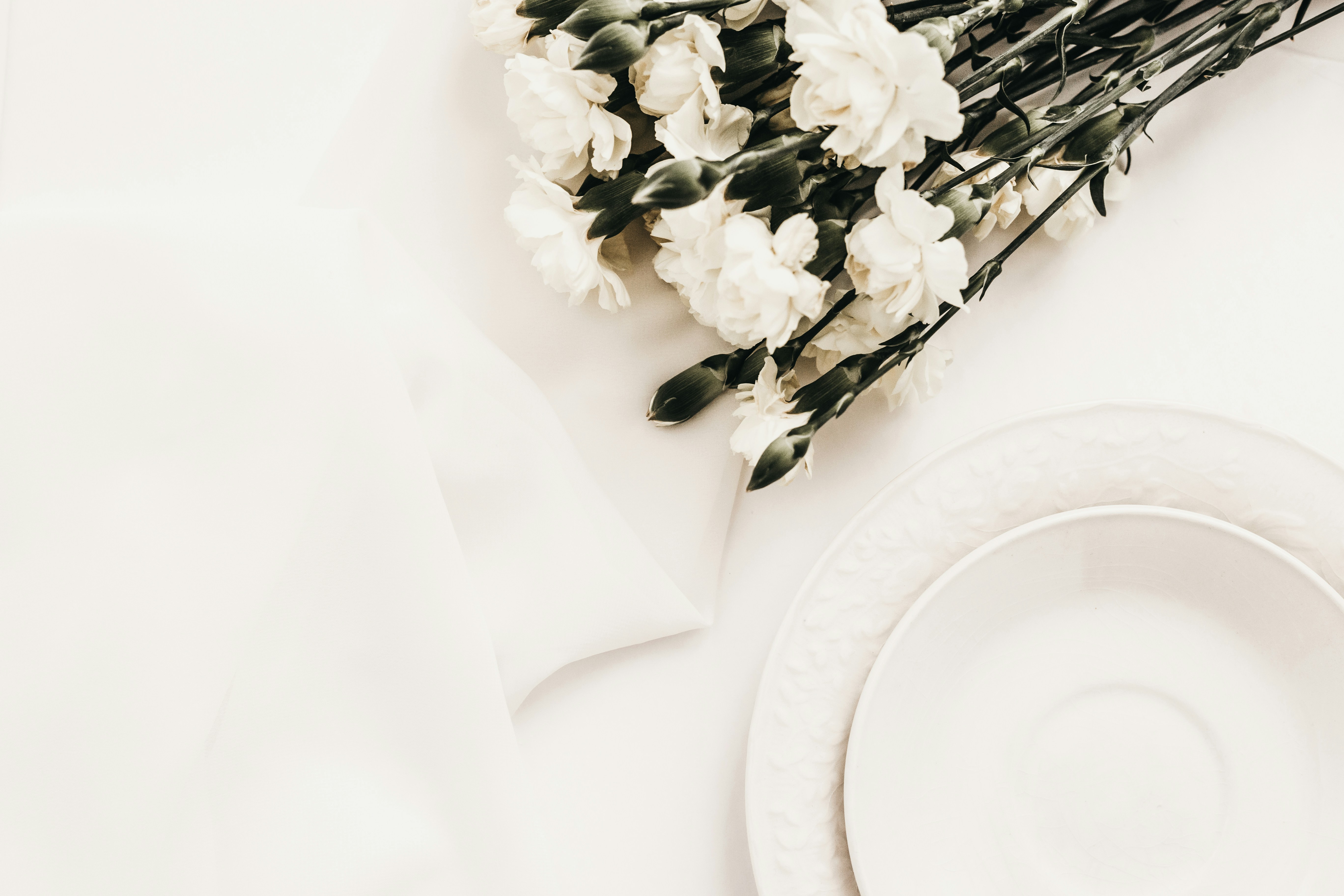 5. Round White Ceramic Plate On White Surface Elegant Teams Background