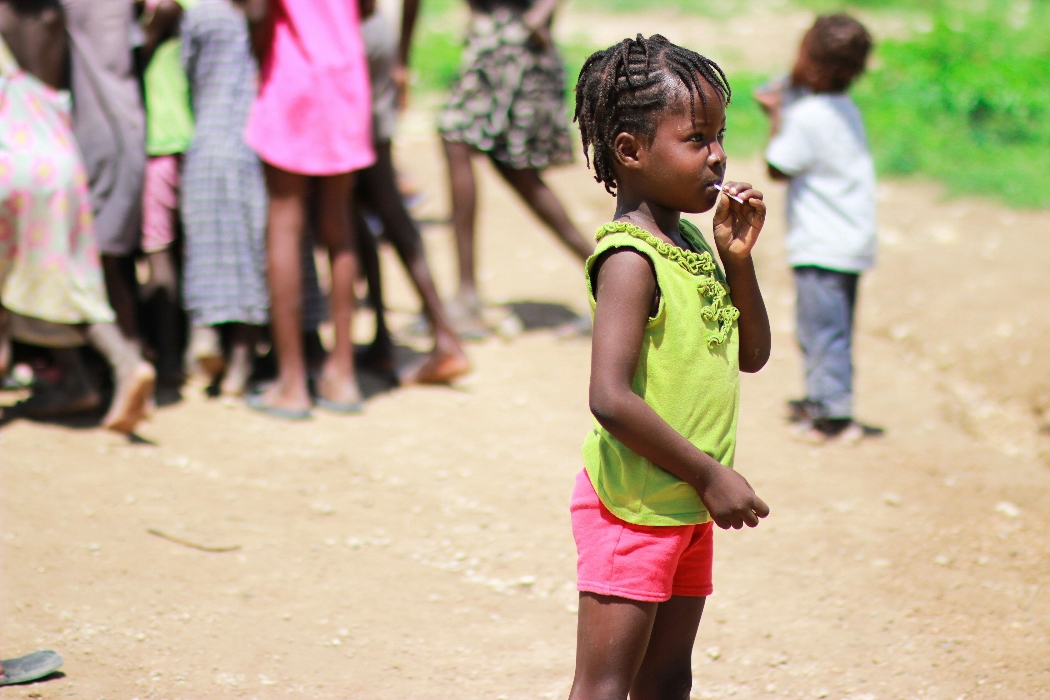 shallow focus photography of braid haired kid flag day teams background