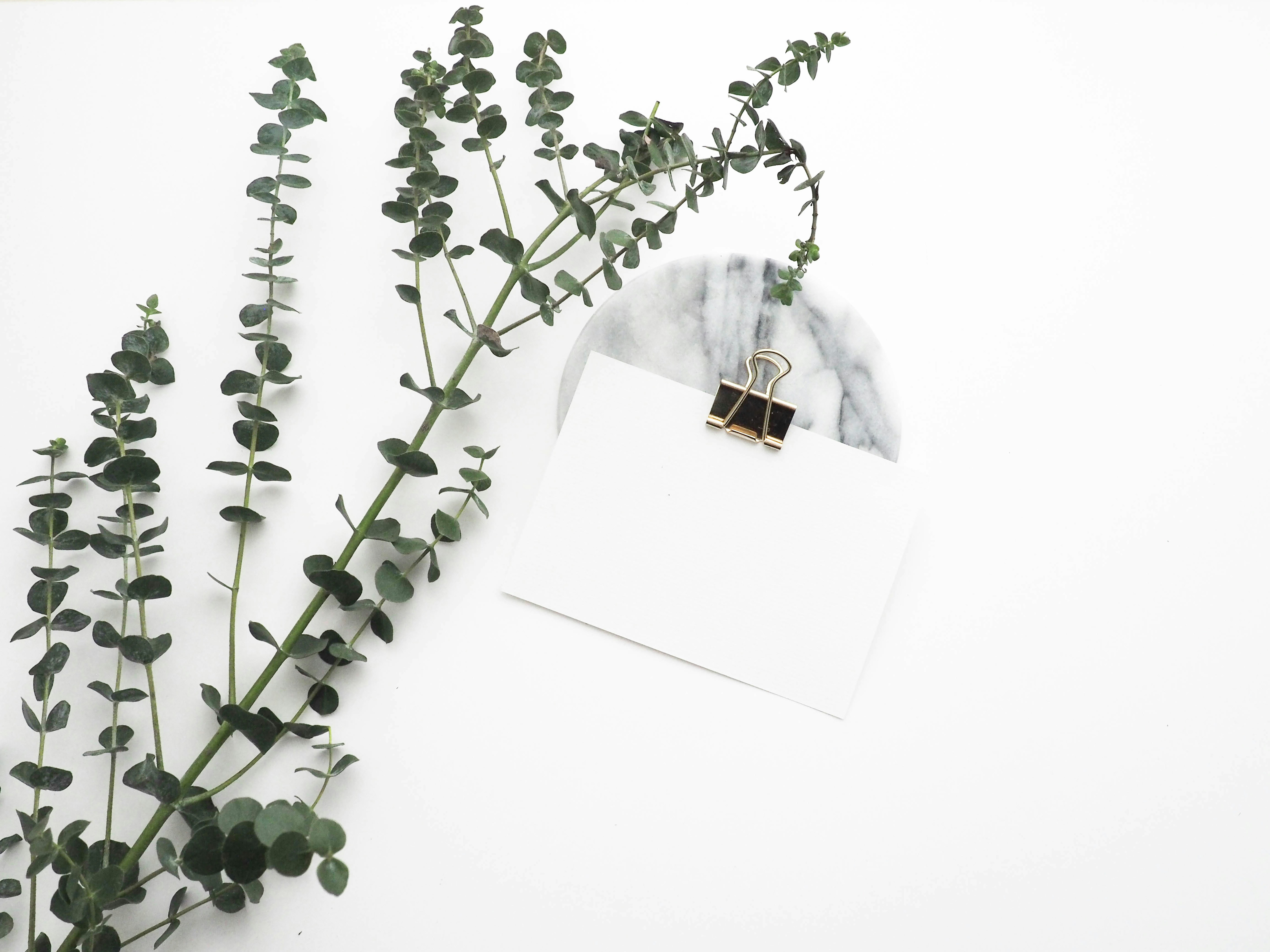 6. White Card With Paper Clip Near Plant Flat Teams Background