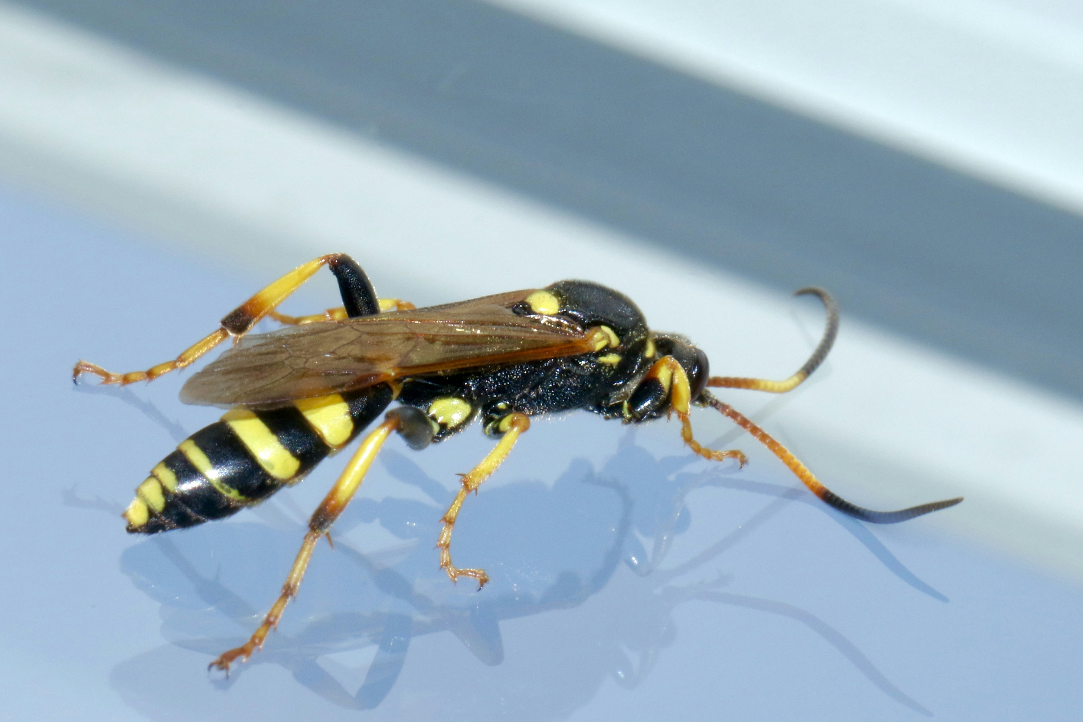 8. Yellow And Black Wasp On White Surface Insect Teams Background