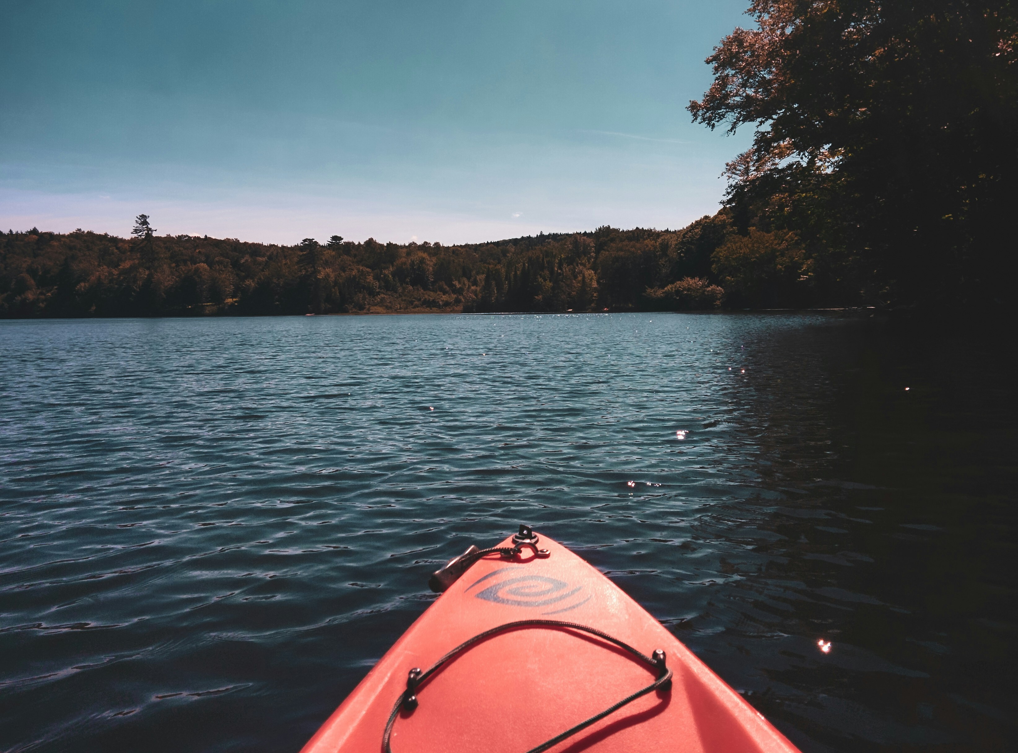orange kayak on water near green trees during daytime intuitive teams background
