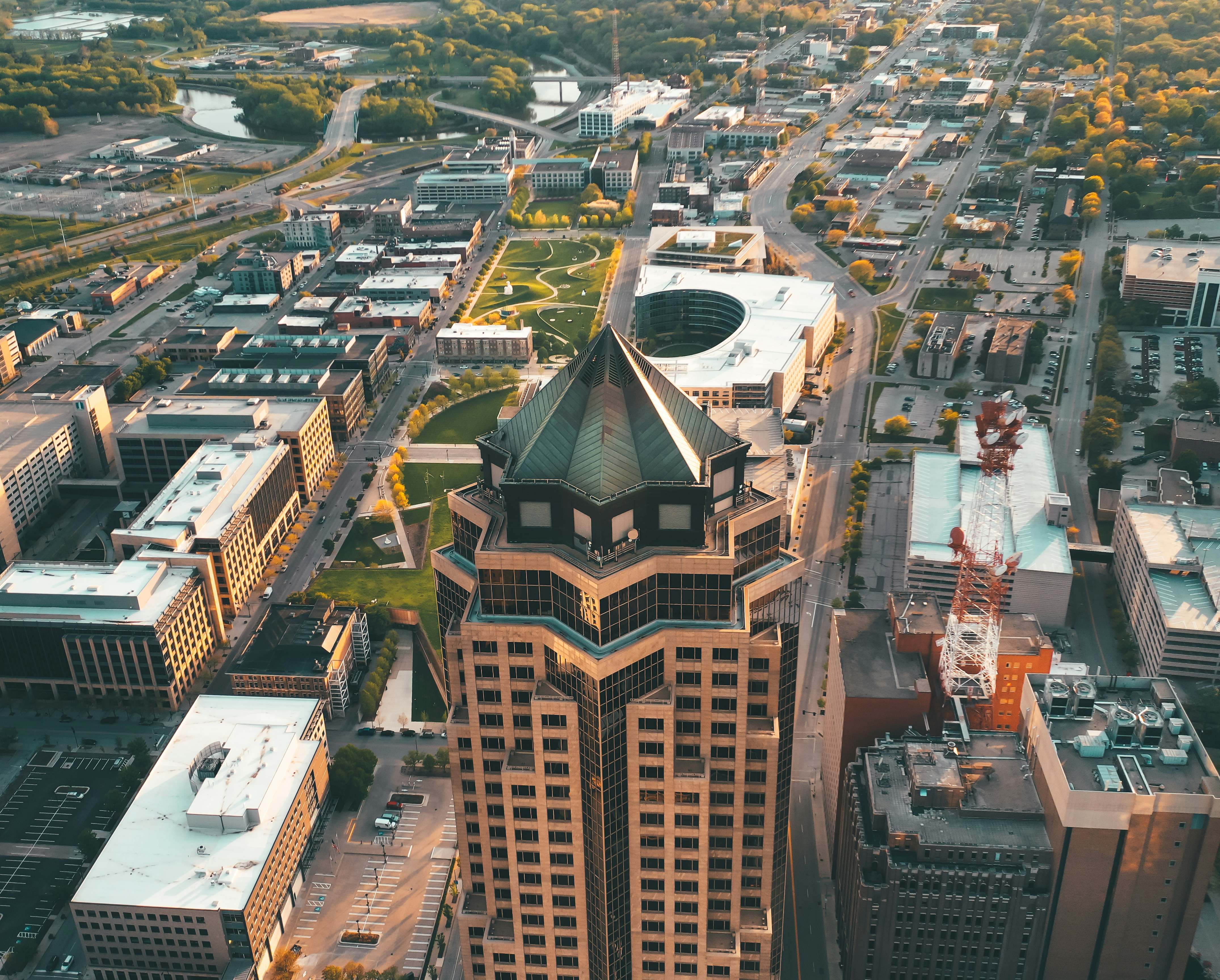 1. Aerial View Of City Buildings During Daytime Iowa Teams Background