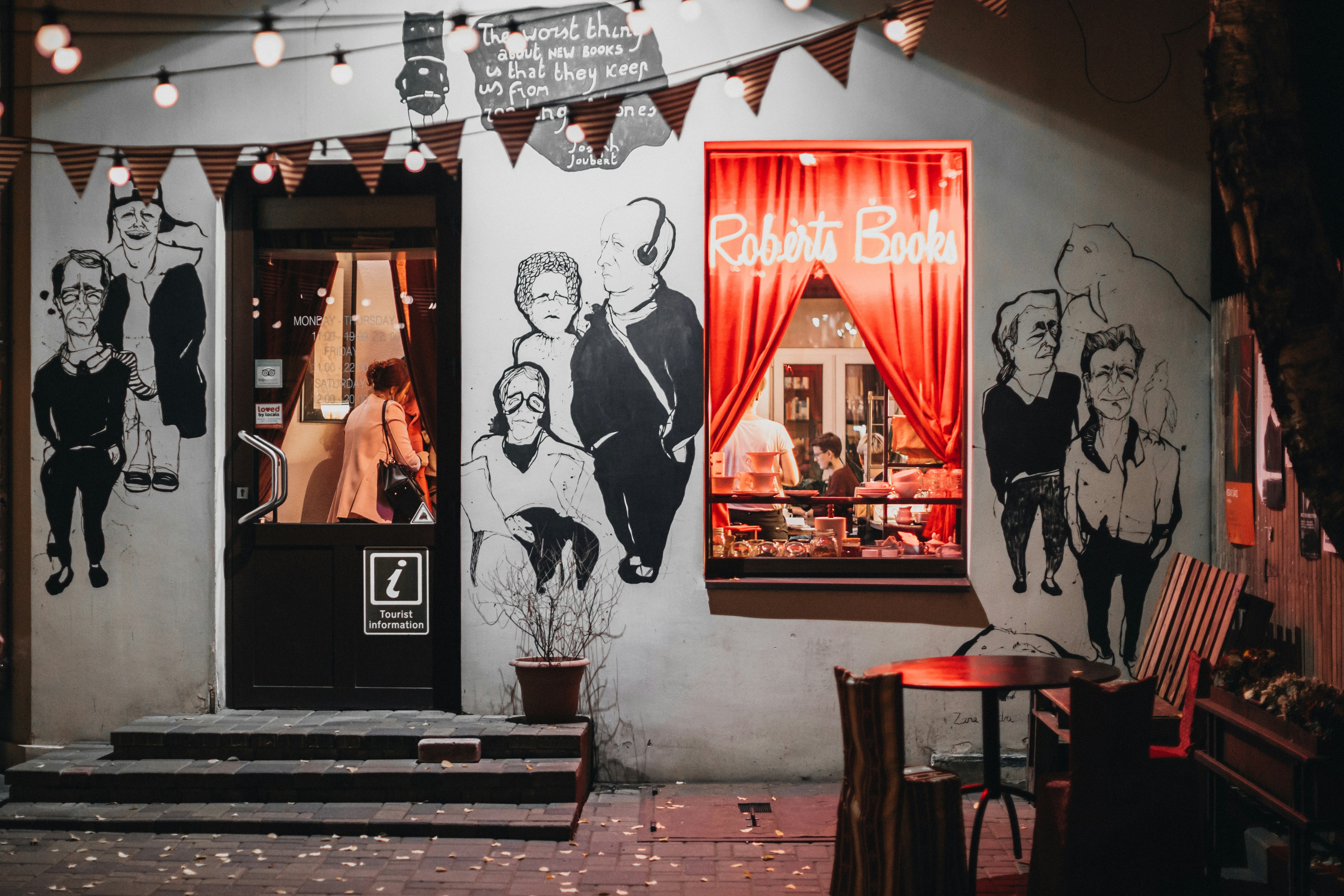 9. Empty Table Near Flower Pot With Lights On Latvia Teams Background