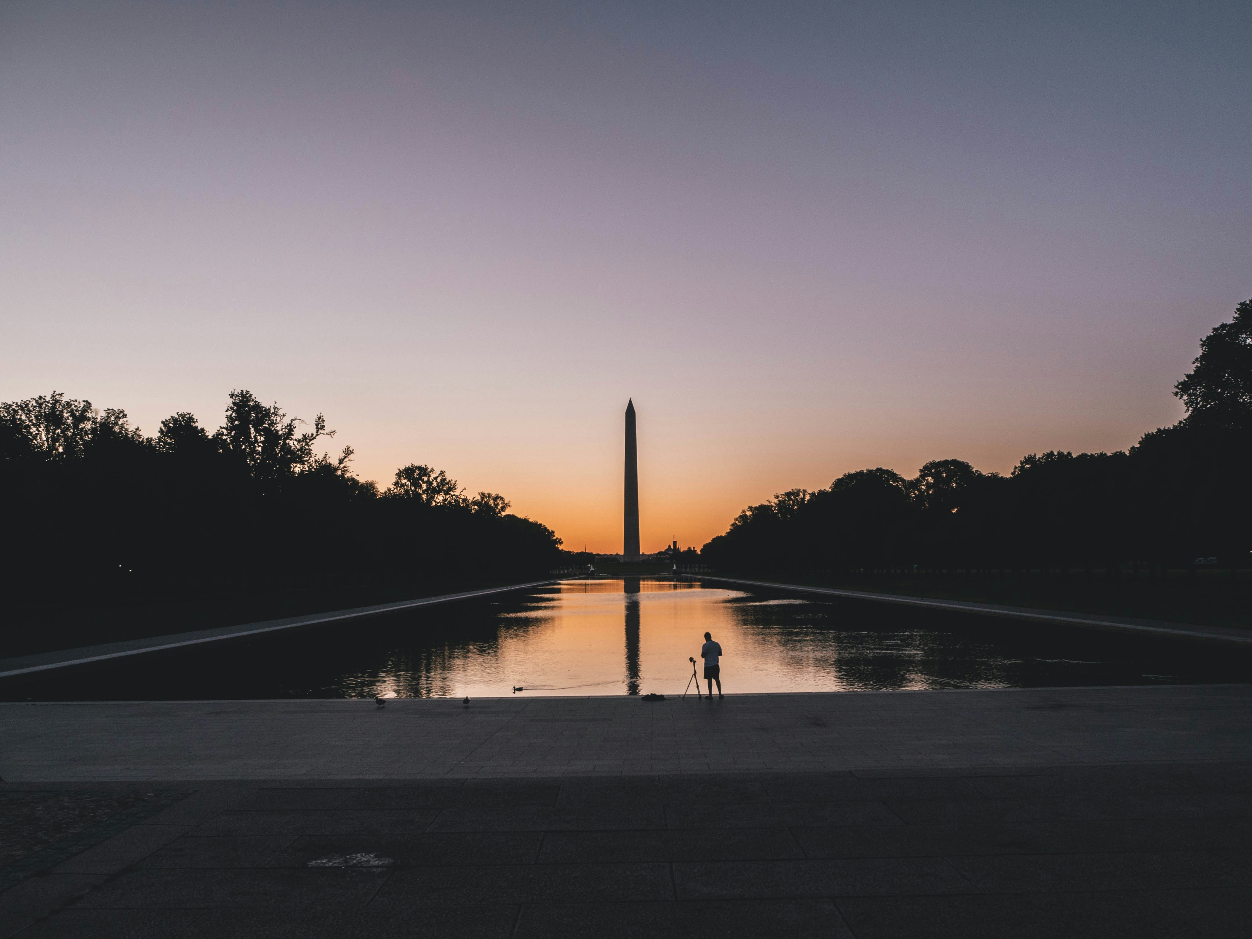 1. Silhouette Photo Of Person Standing Near Body Of Water Lincoln Memorial Teams Background