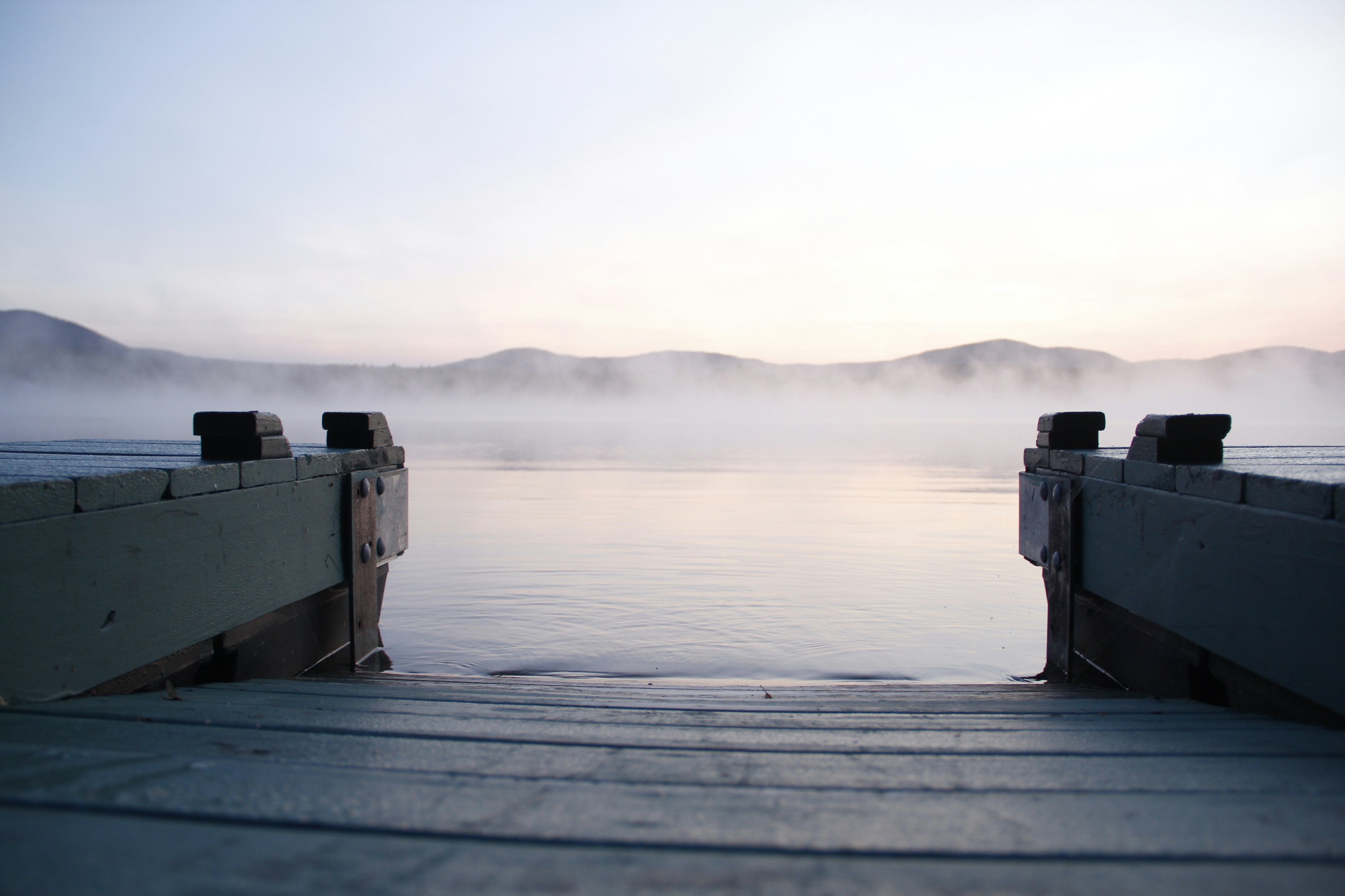 9. Gray Wooden Dock Near Body Of Water Maine Teams Background