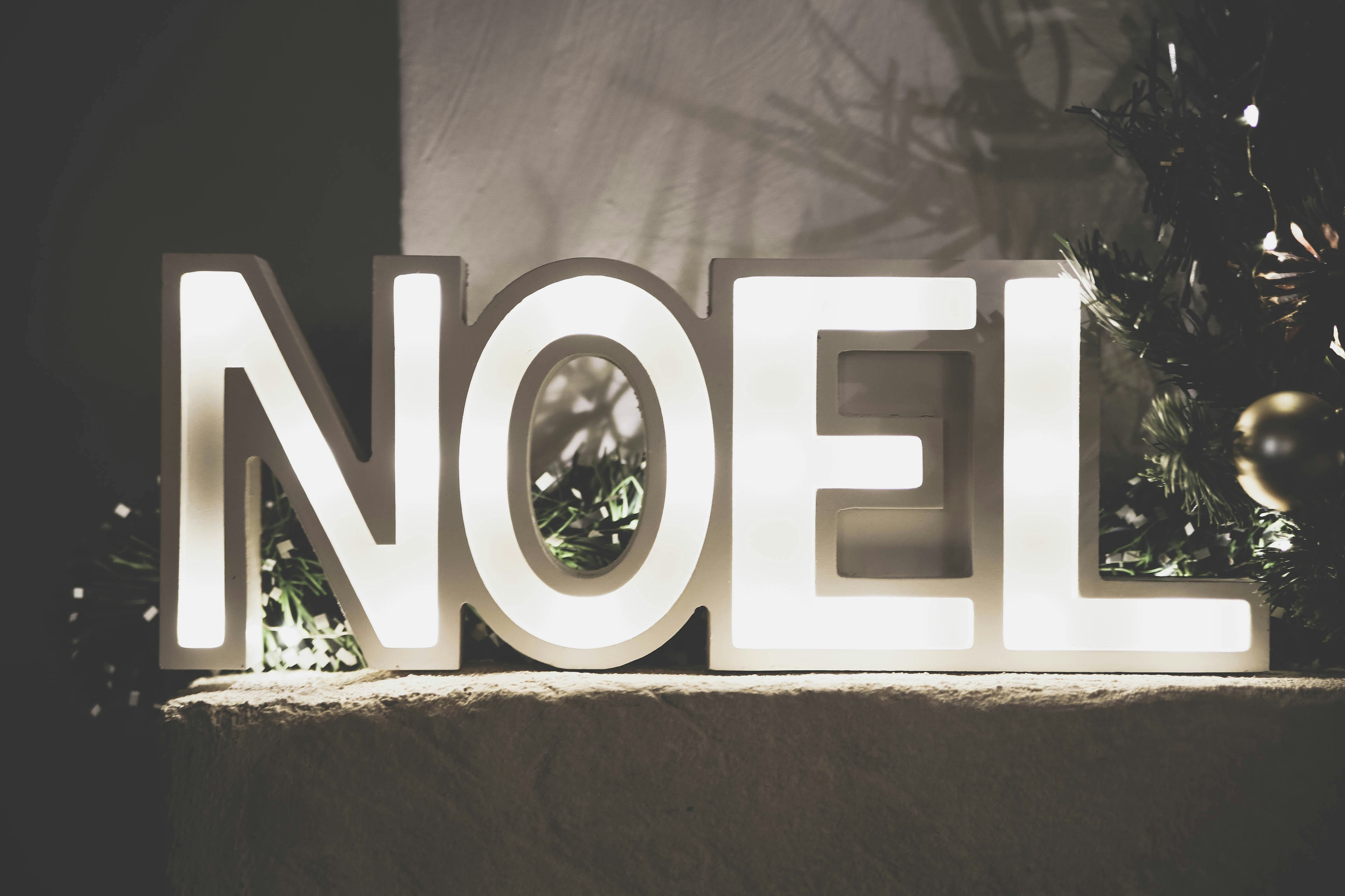 8. White Noel Freestanding Letters With Light Noel Teams Background