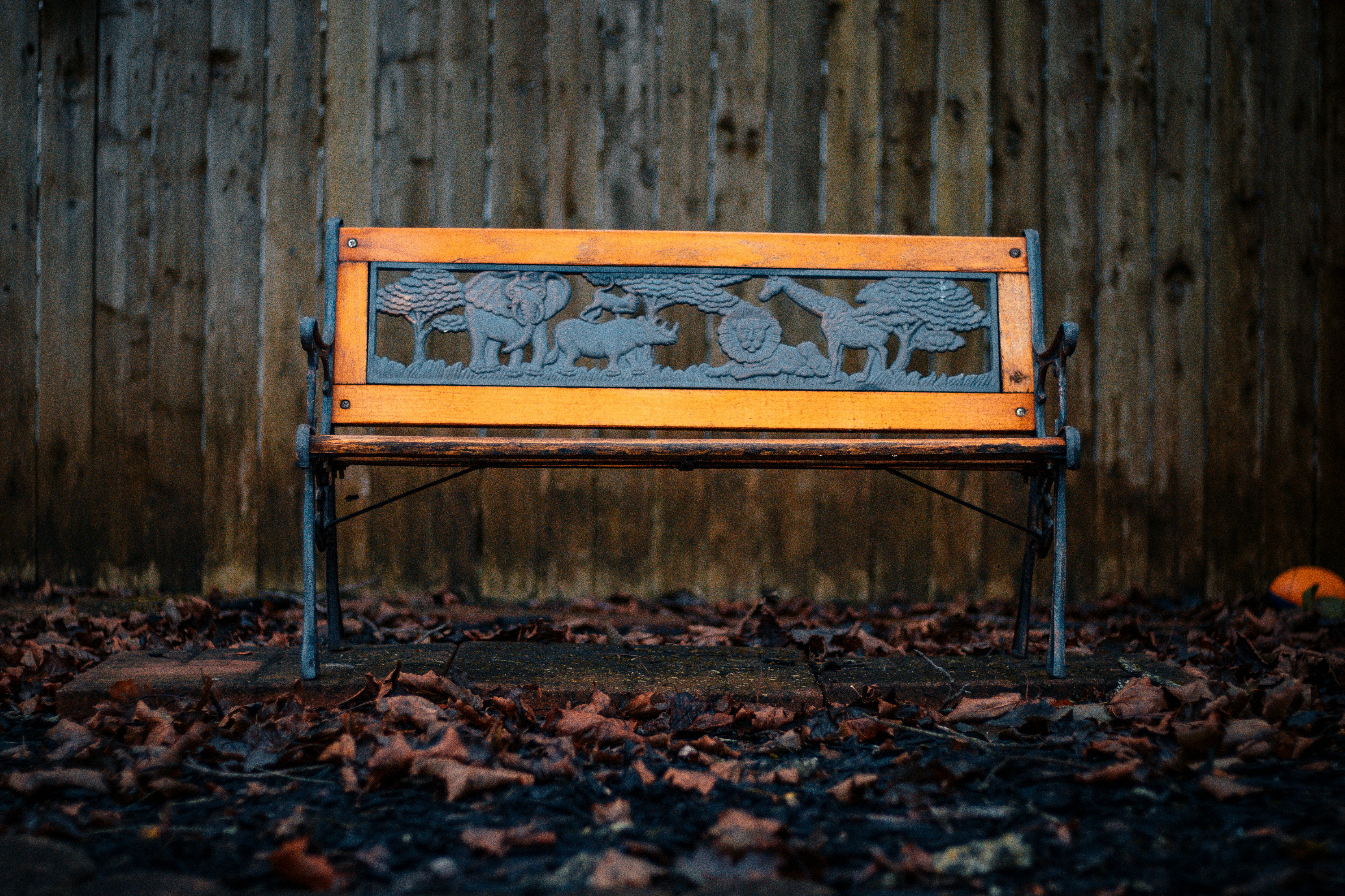 9. Brown And Black Metal Framed Bench Beside Brown Wooden Fence Ohio Teams Background