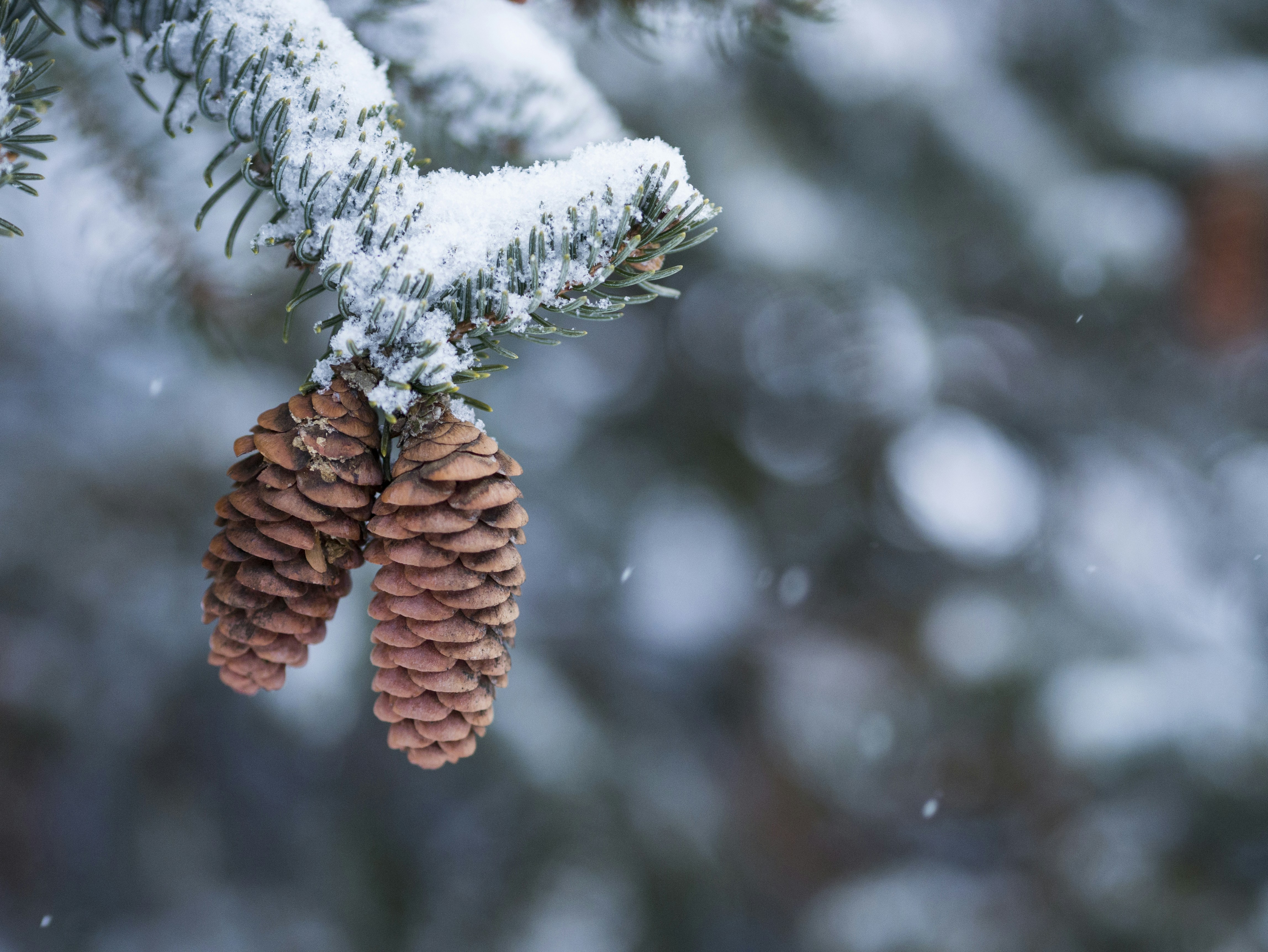 brown pine cones on snow covered ground pinecone teams background