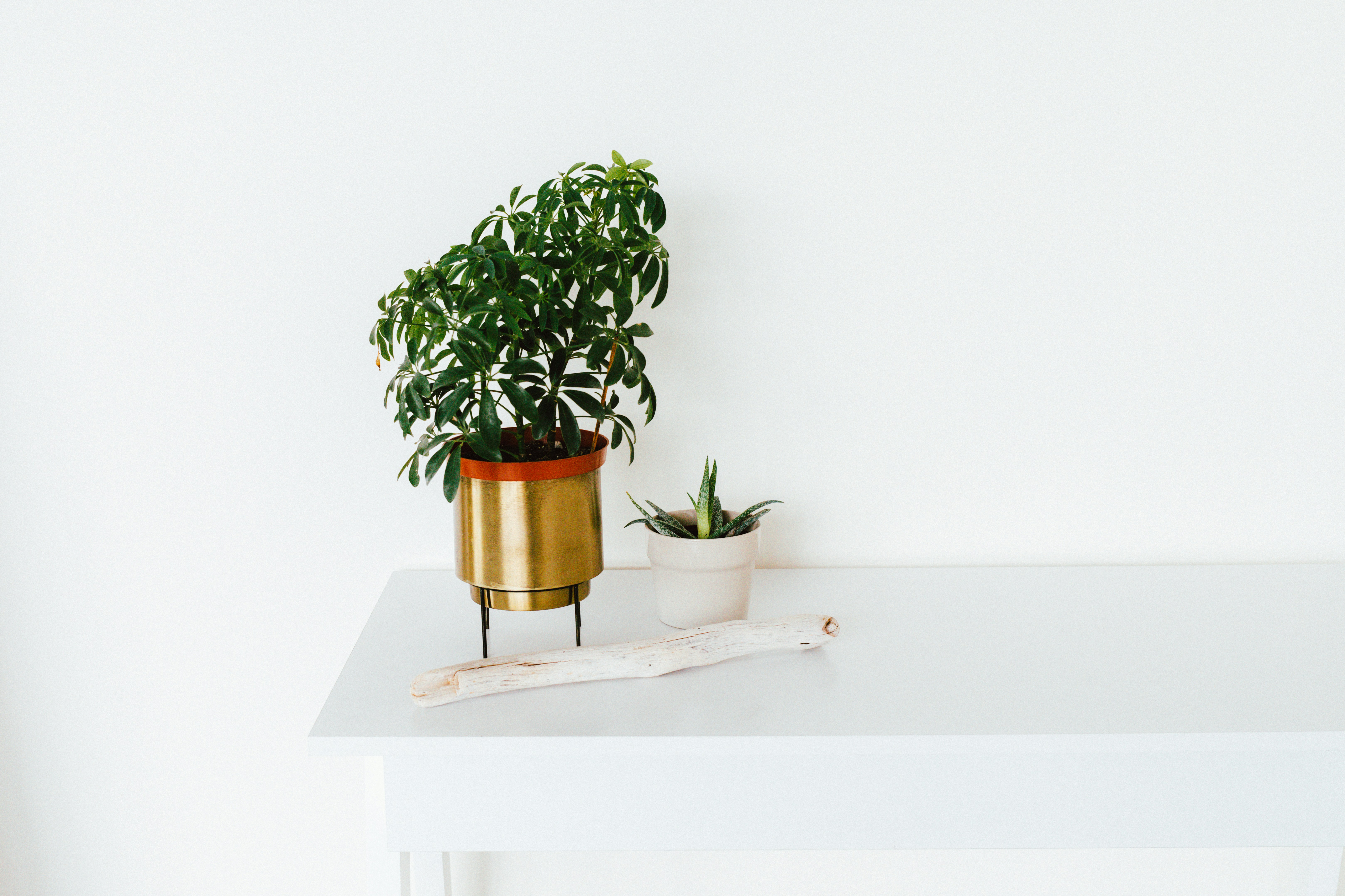 green leafed plant in gold pot on white table pot of gold teams background