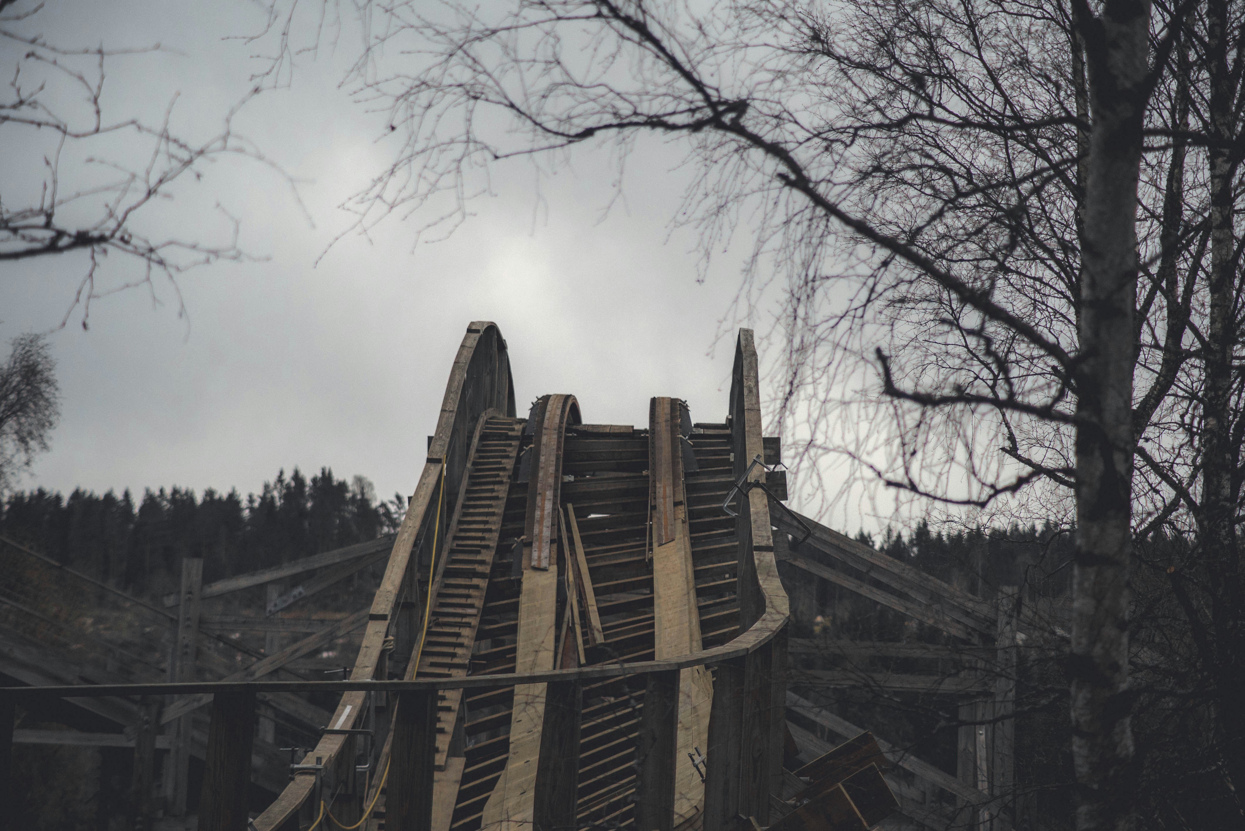 6. Brown Wooden Foot Bridge Rollercoaster Teams Background