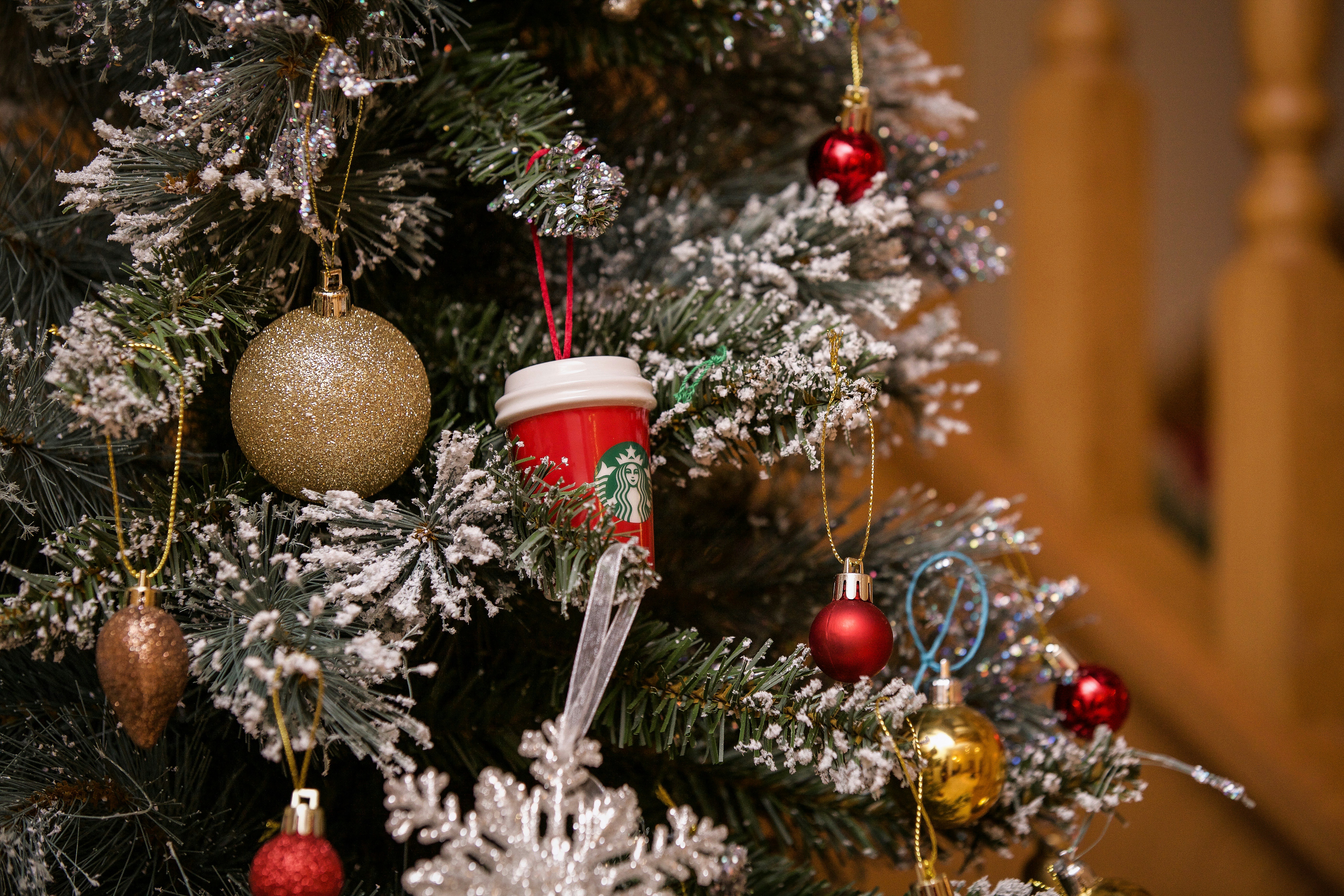 shallow focus of christmas tree santa's elves teams background