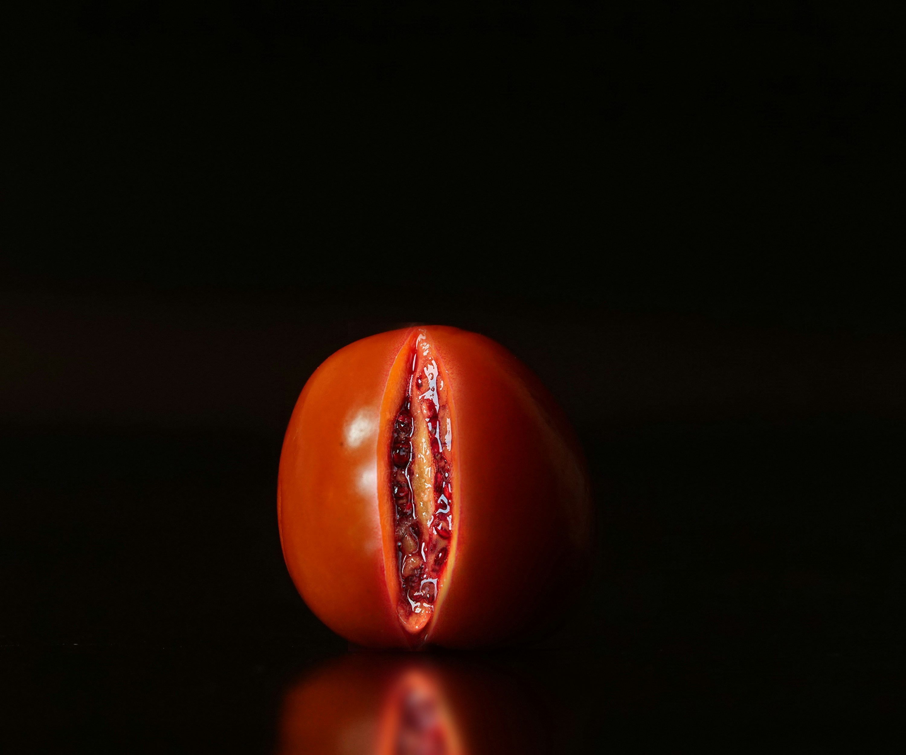 3. Red Tomato On Black Surface Sensual Teams Background
