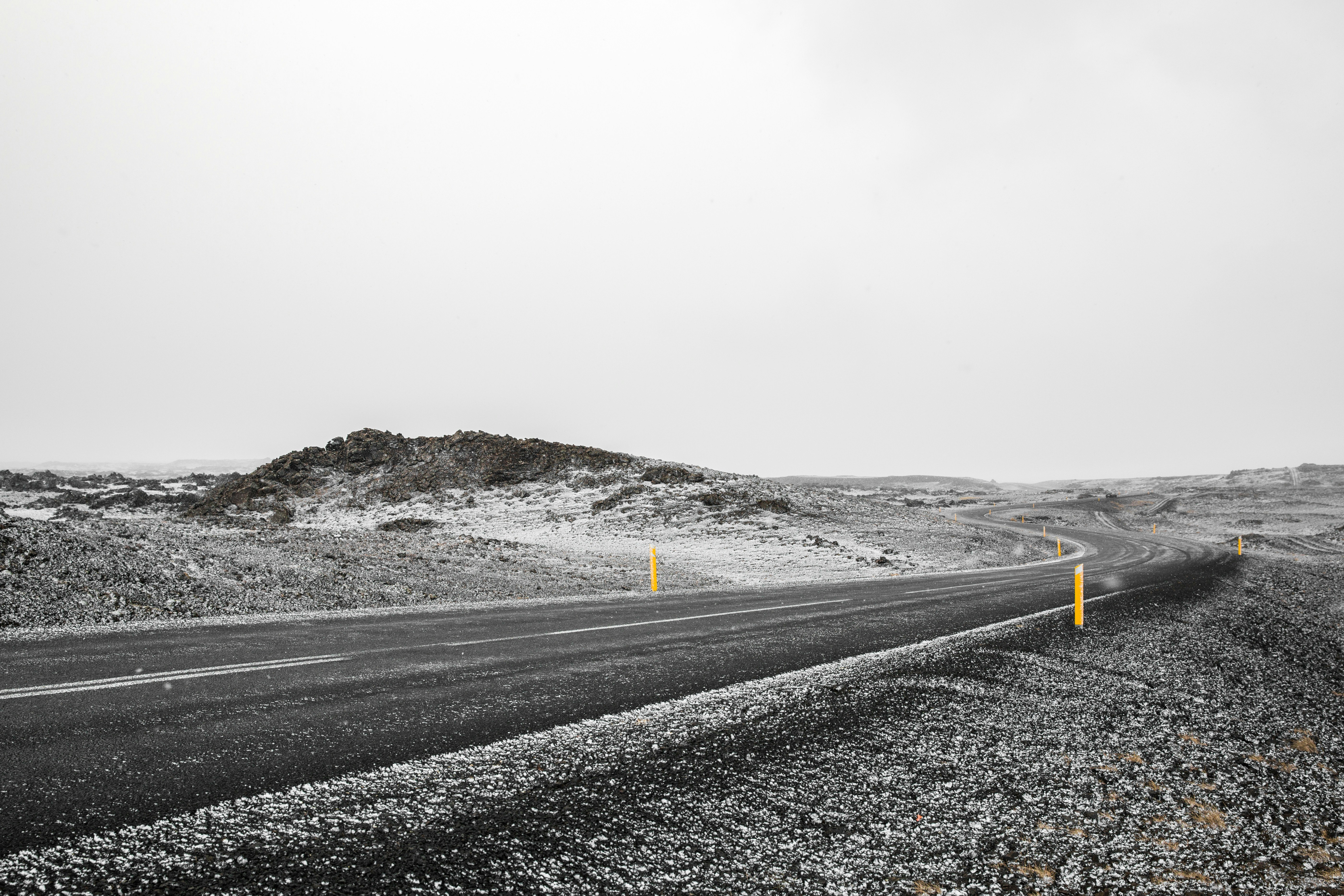 6. Black Asphalt Road In The Middle Of Snow Covered Field Sparse Teams Background