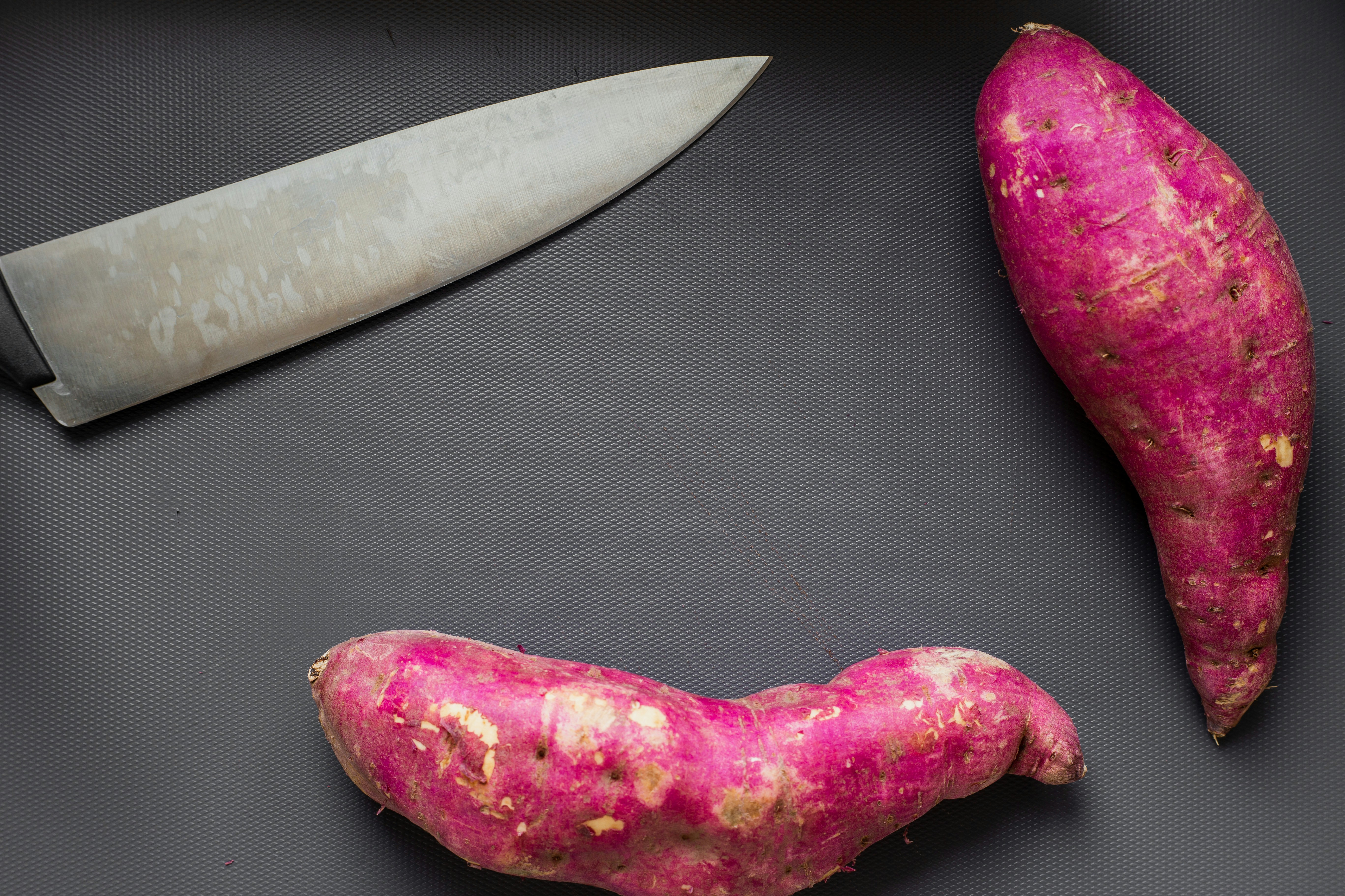 2. Sliced Vegetable On Brown Wooden Chopping Board Sweet Potato Teams Background