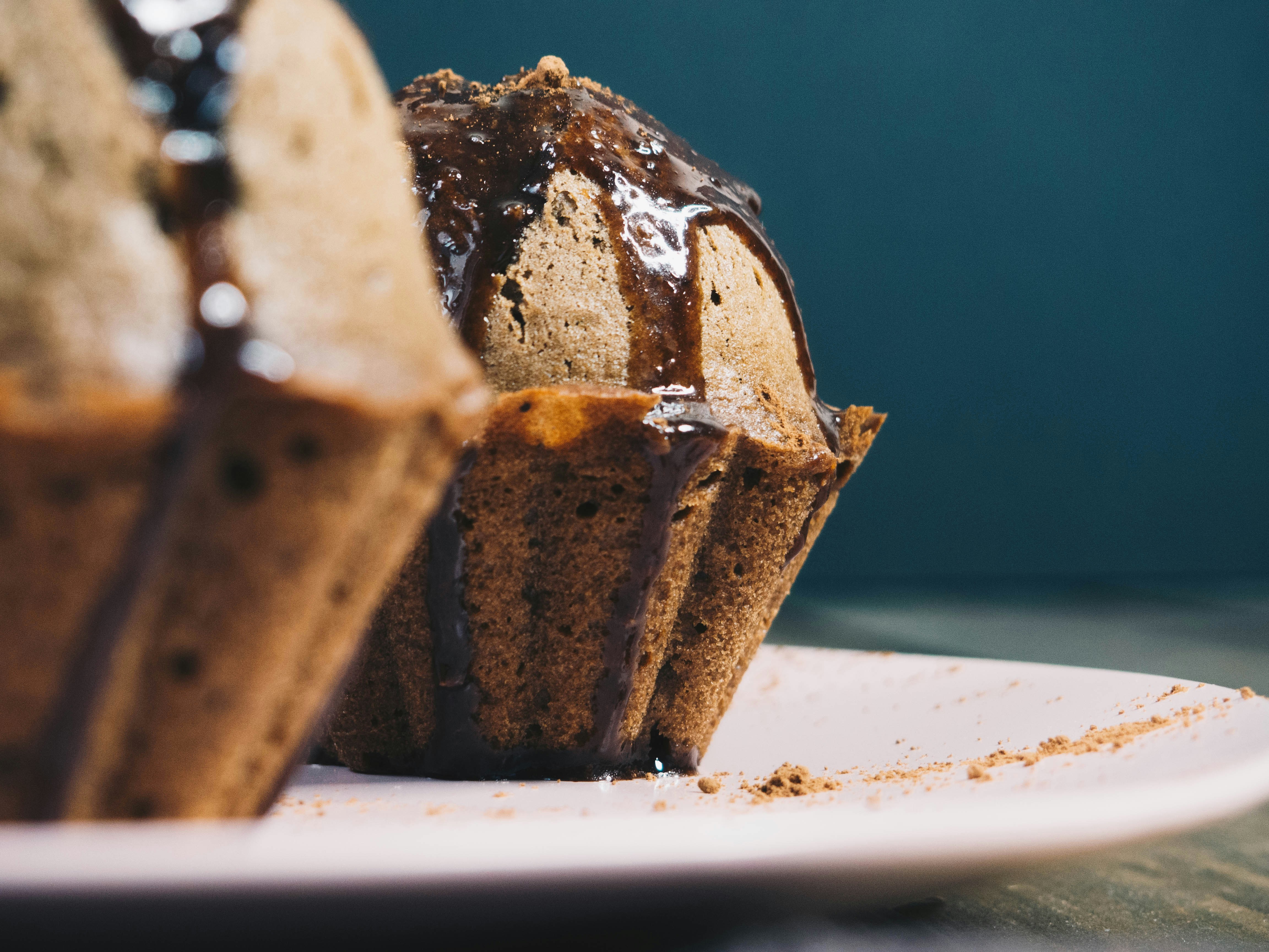 2. Brown And White Chocolate Cake On White Ceramic Plate Tasty Teams Background