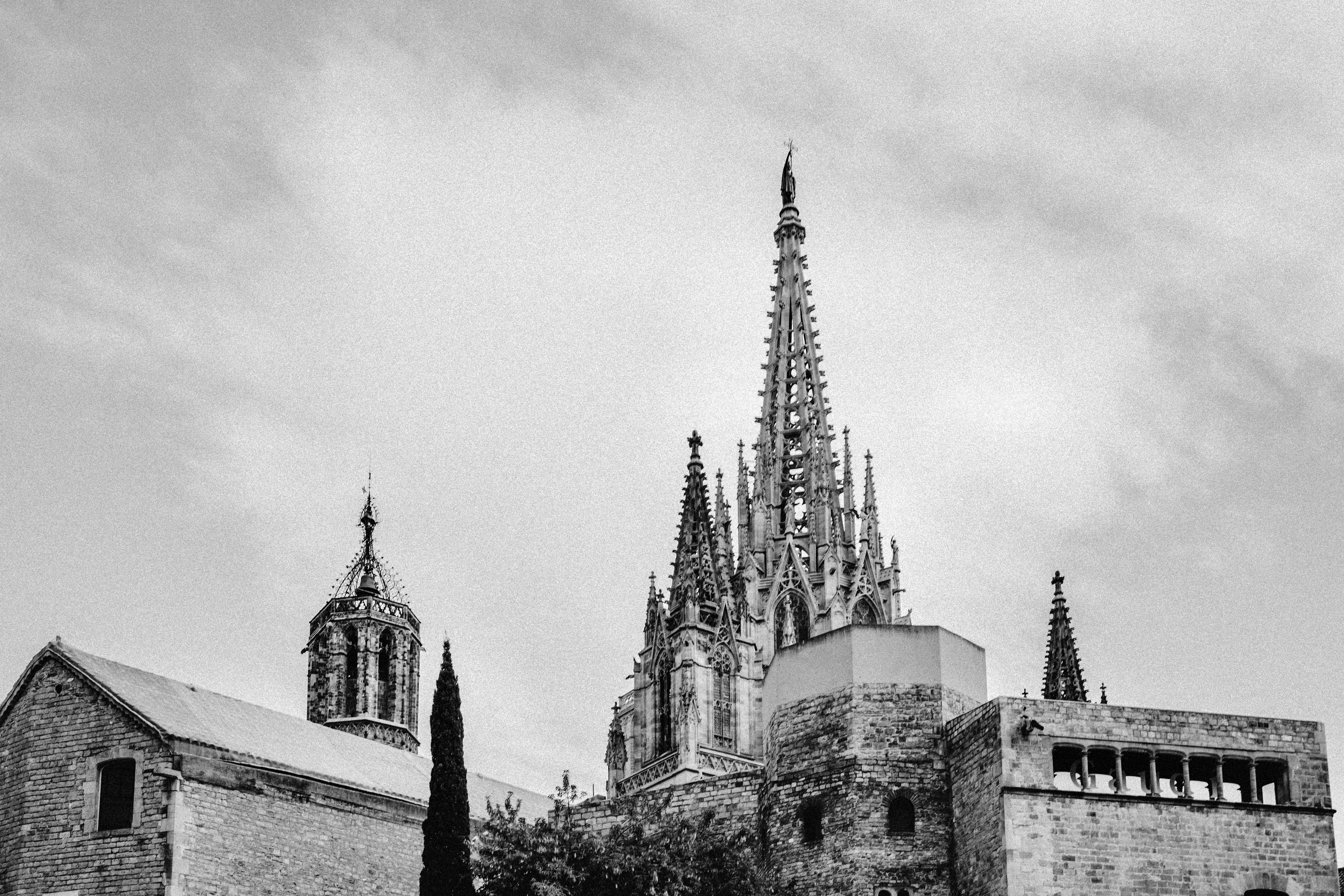 2. Grayscale Photo Of Sagrada Familia Tower Teams Background