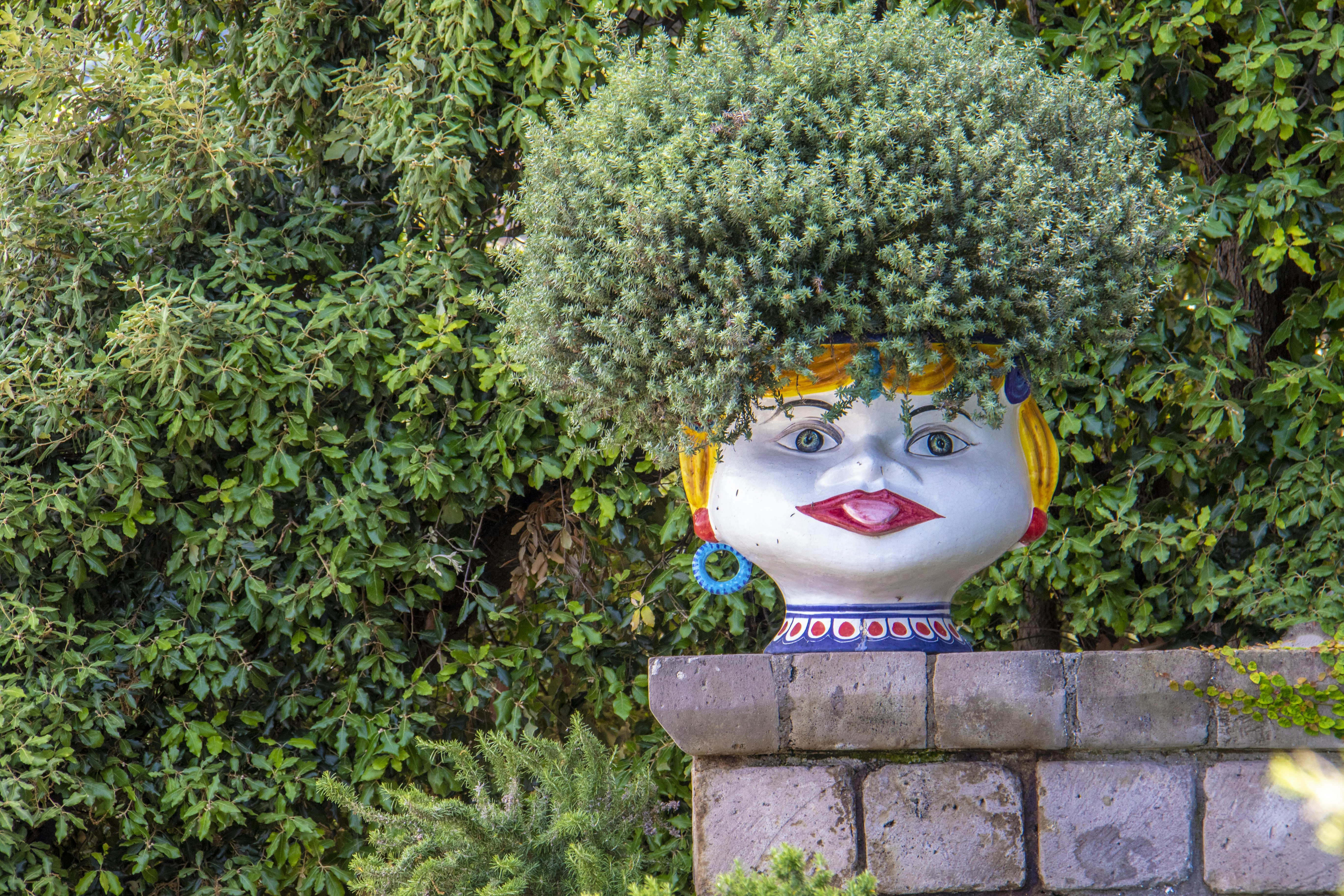 10. Green Leafed Plant In White Buddha Head Pot Unusual Teams Background