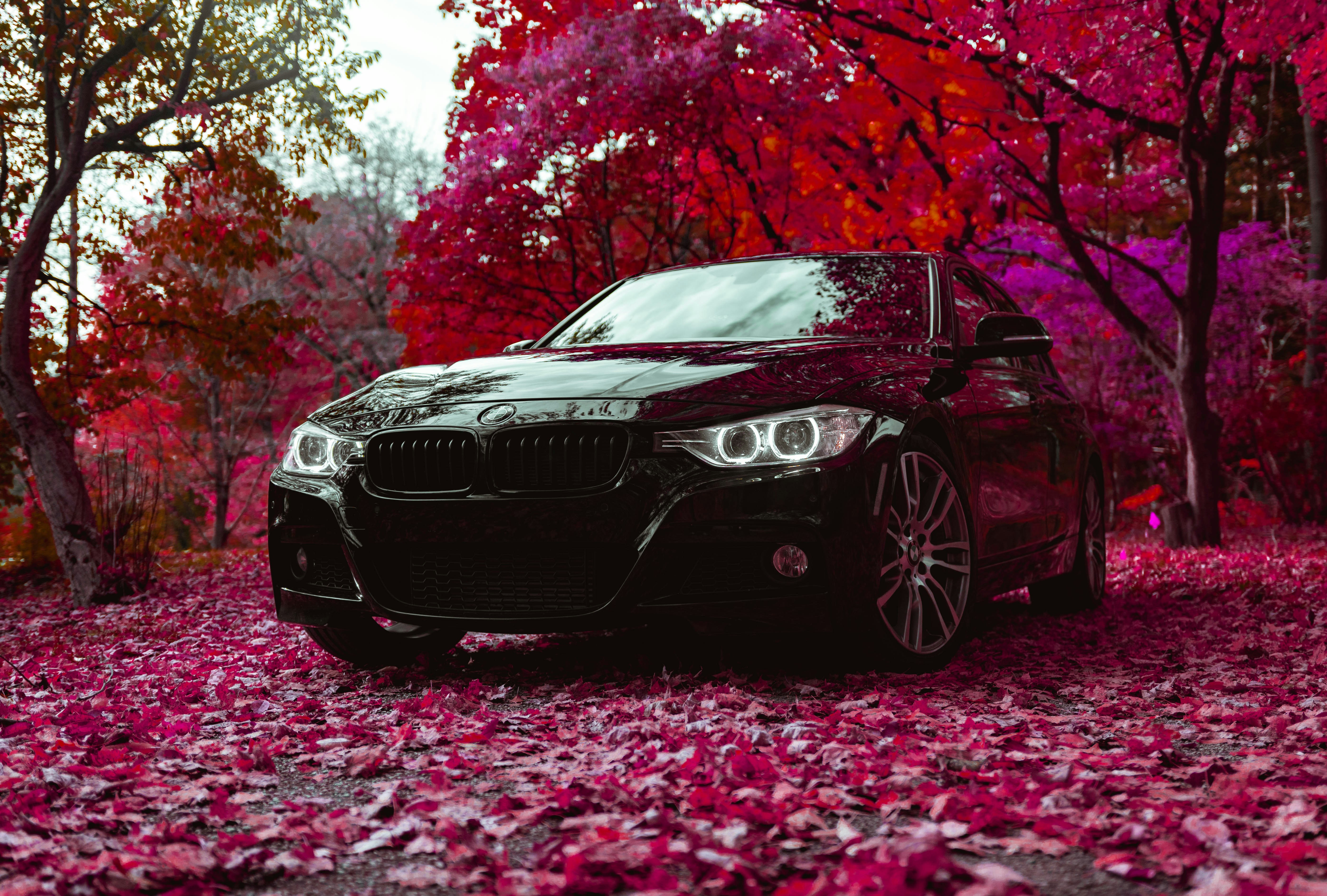 1. Black Bmw Sedan Parked Near Red Tree Vehicle Teams Background