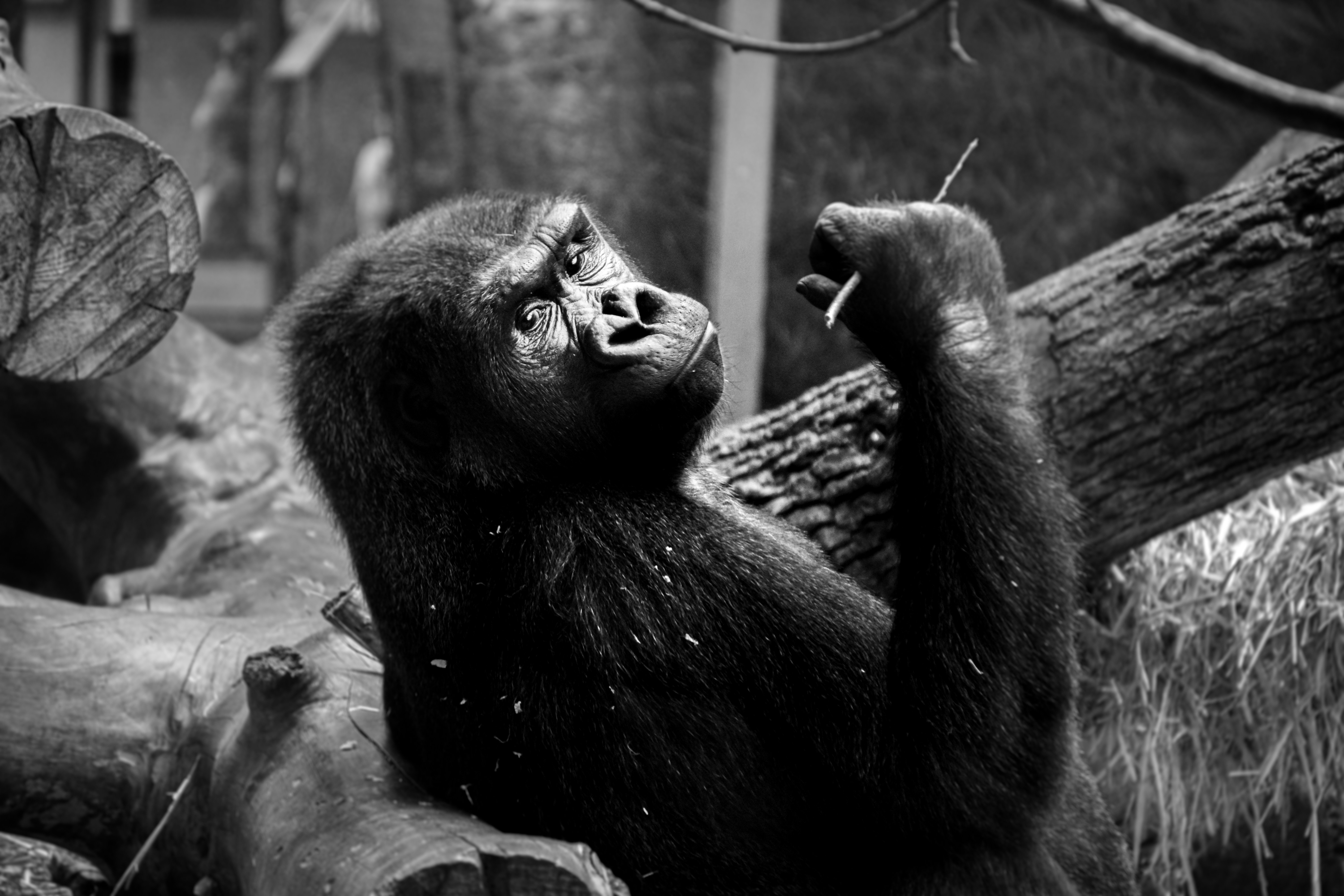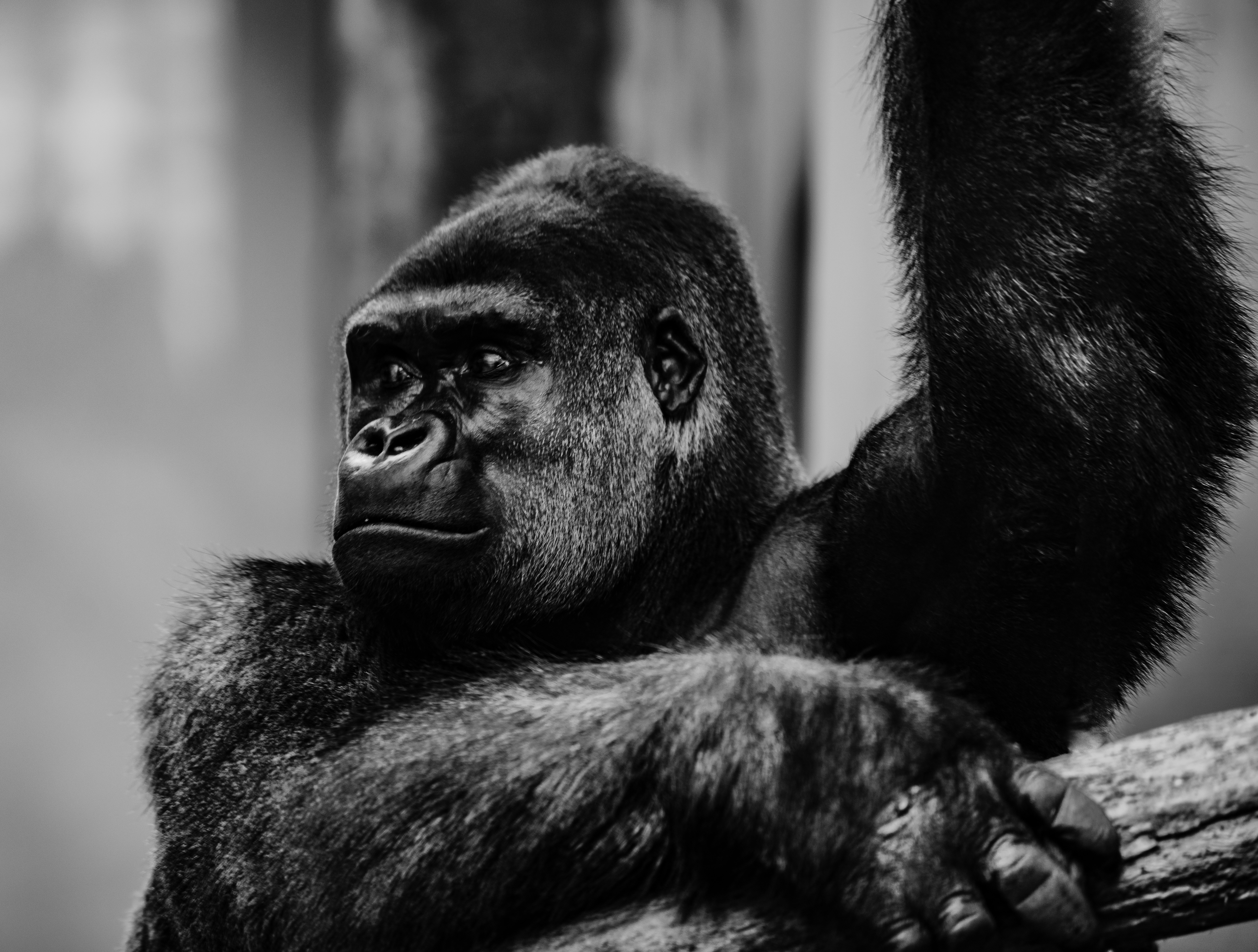 2. Gorilla In Gray Scale Photography Ape Zoom Background