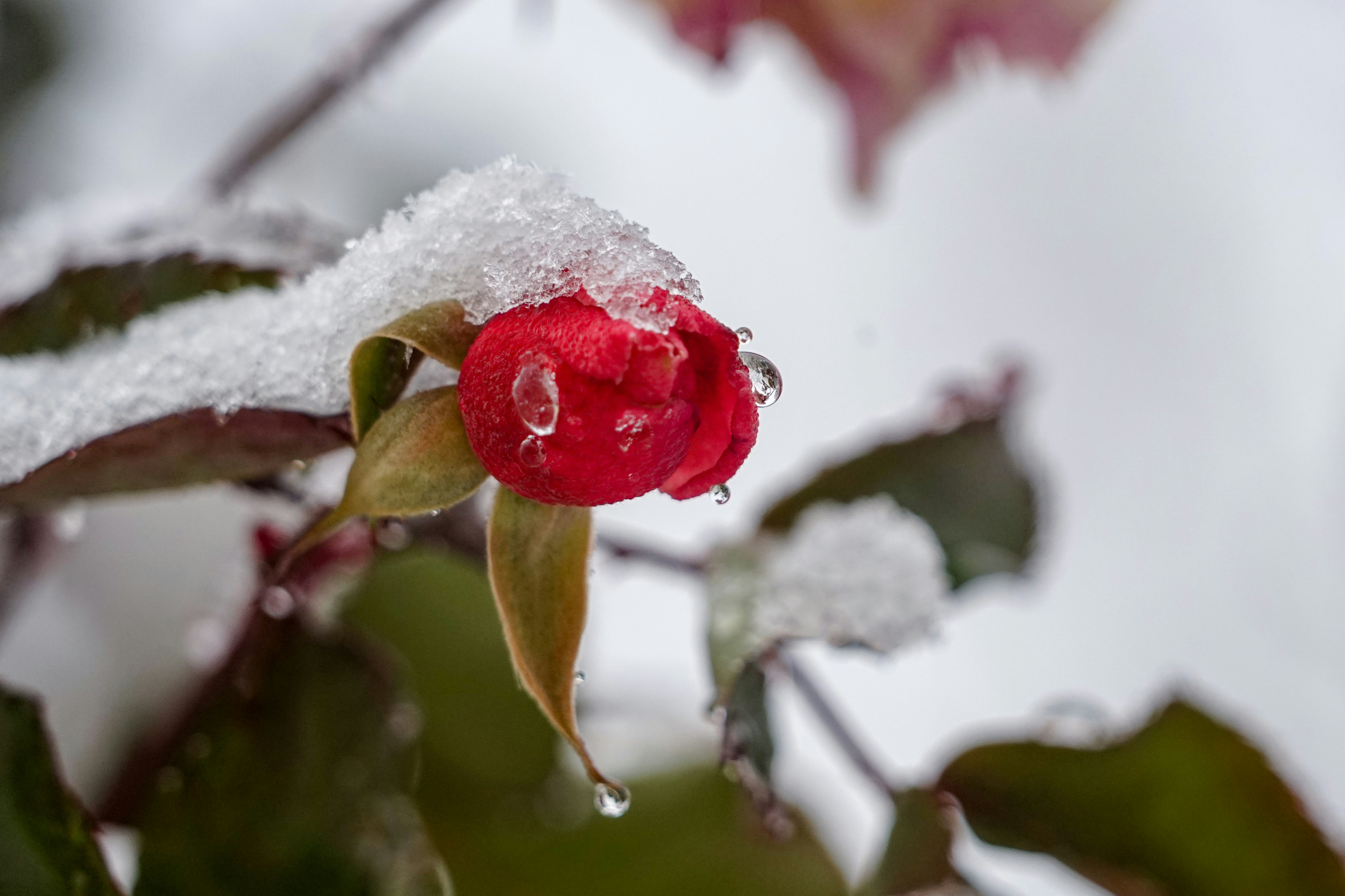 1. Red Rose With Snow On Top Bhutan Zoom Background