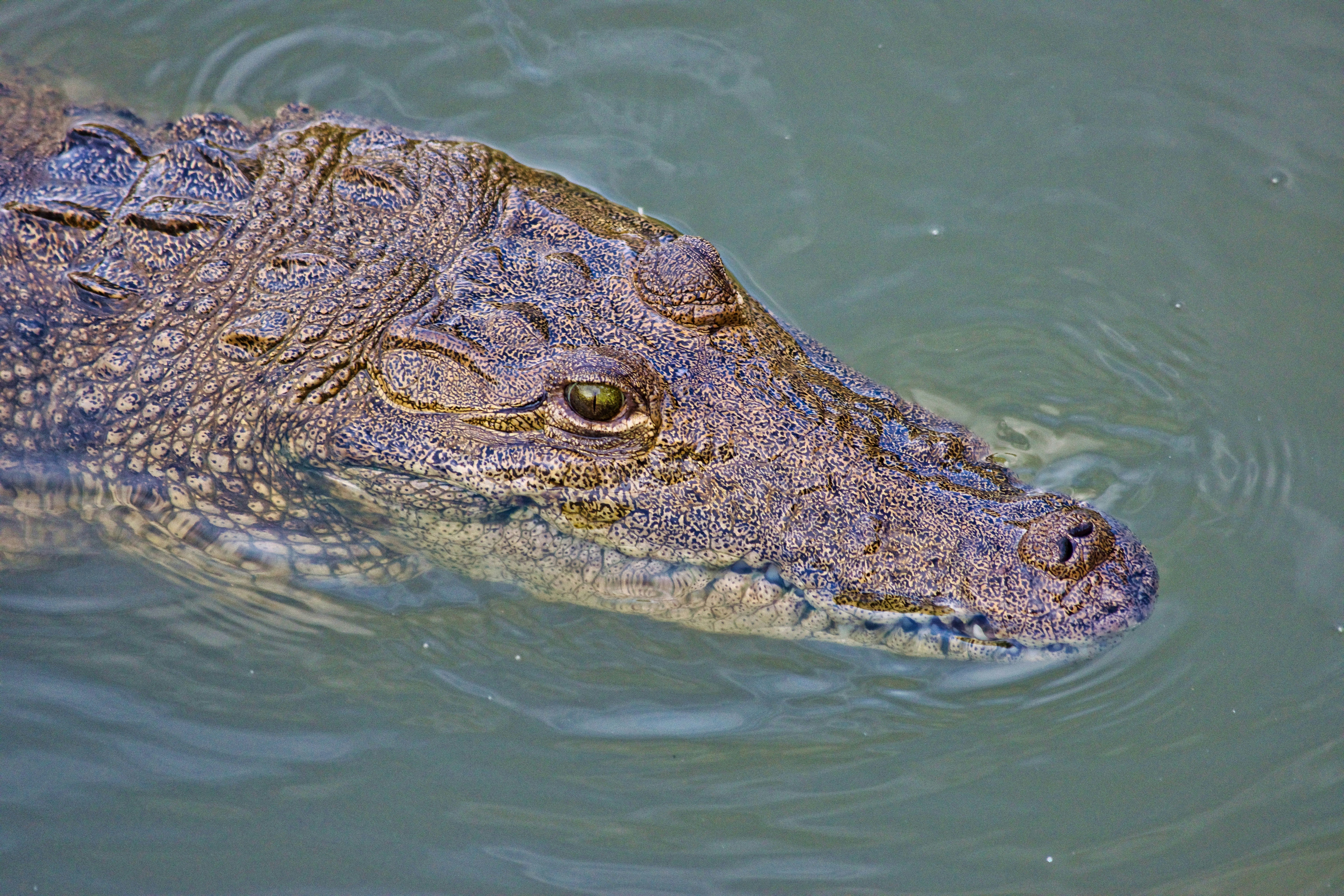 9. Brown Crocodile On Green Water Cancun Zoom Background