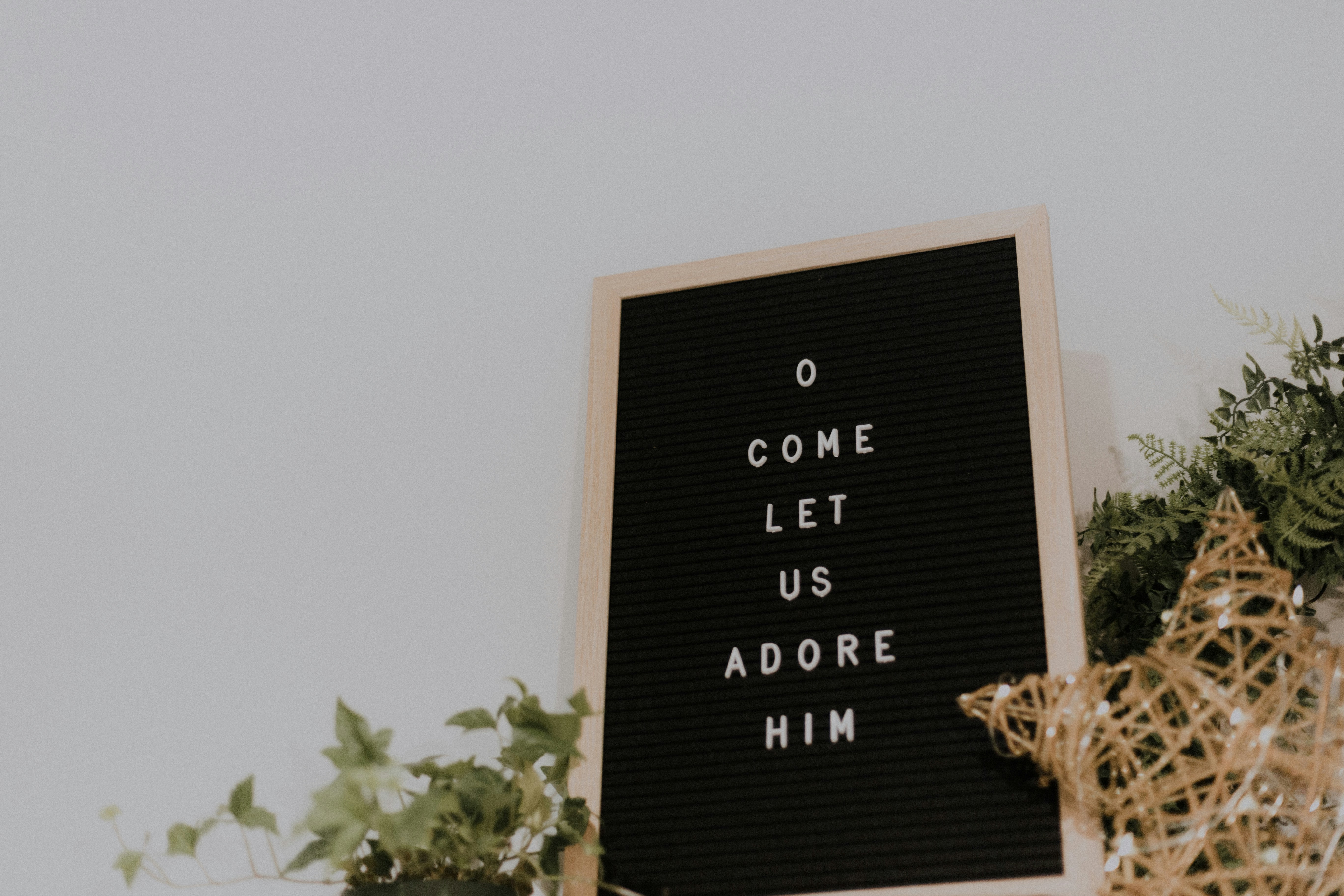2. Shallow Focus Photo Of Come Let Us Adore Him Quote Board With Brown Wooden Frame Carols Zoom Background