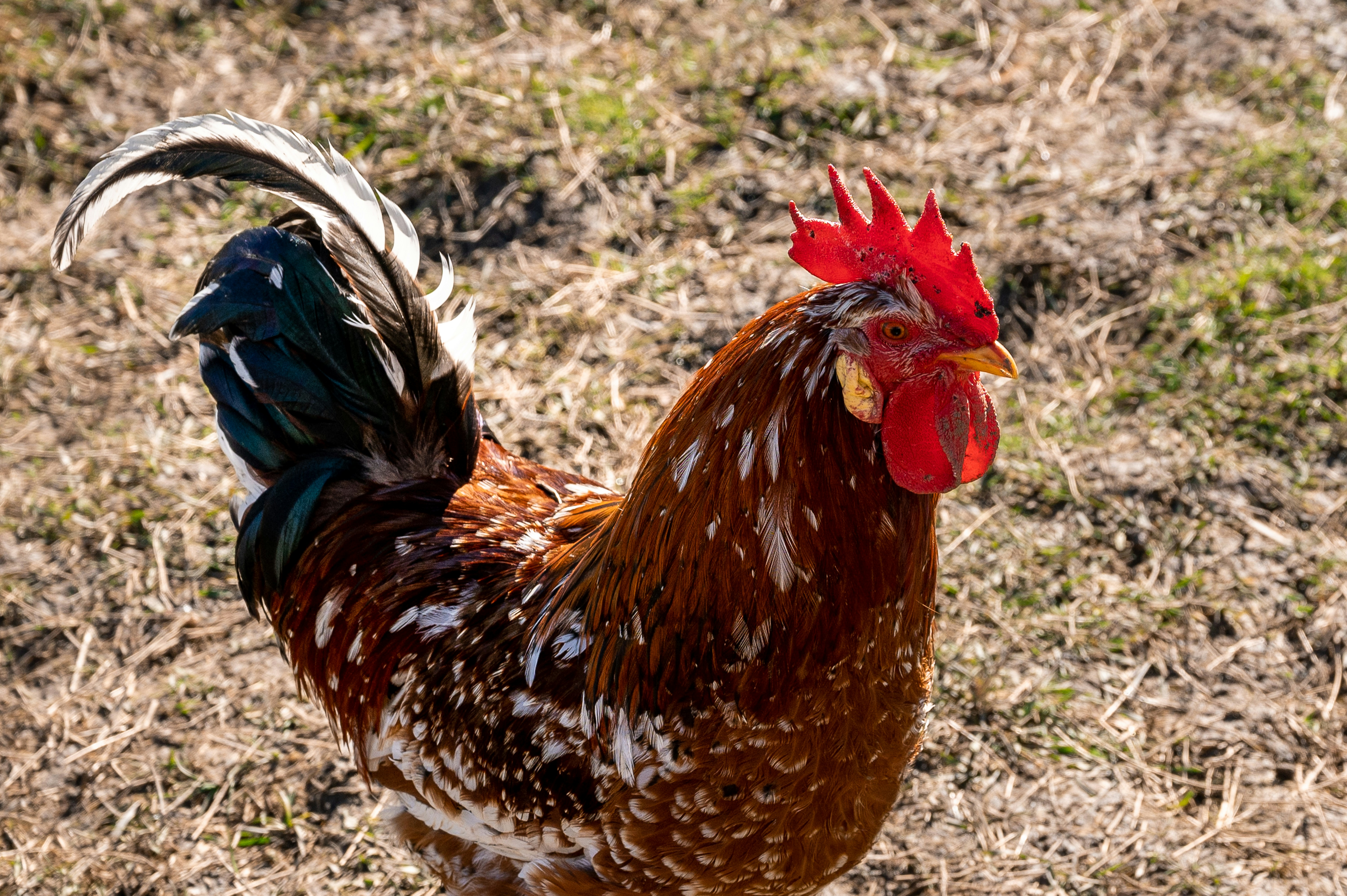 brown and red hen standing in grass covered ground during daytime chicken zoom background