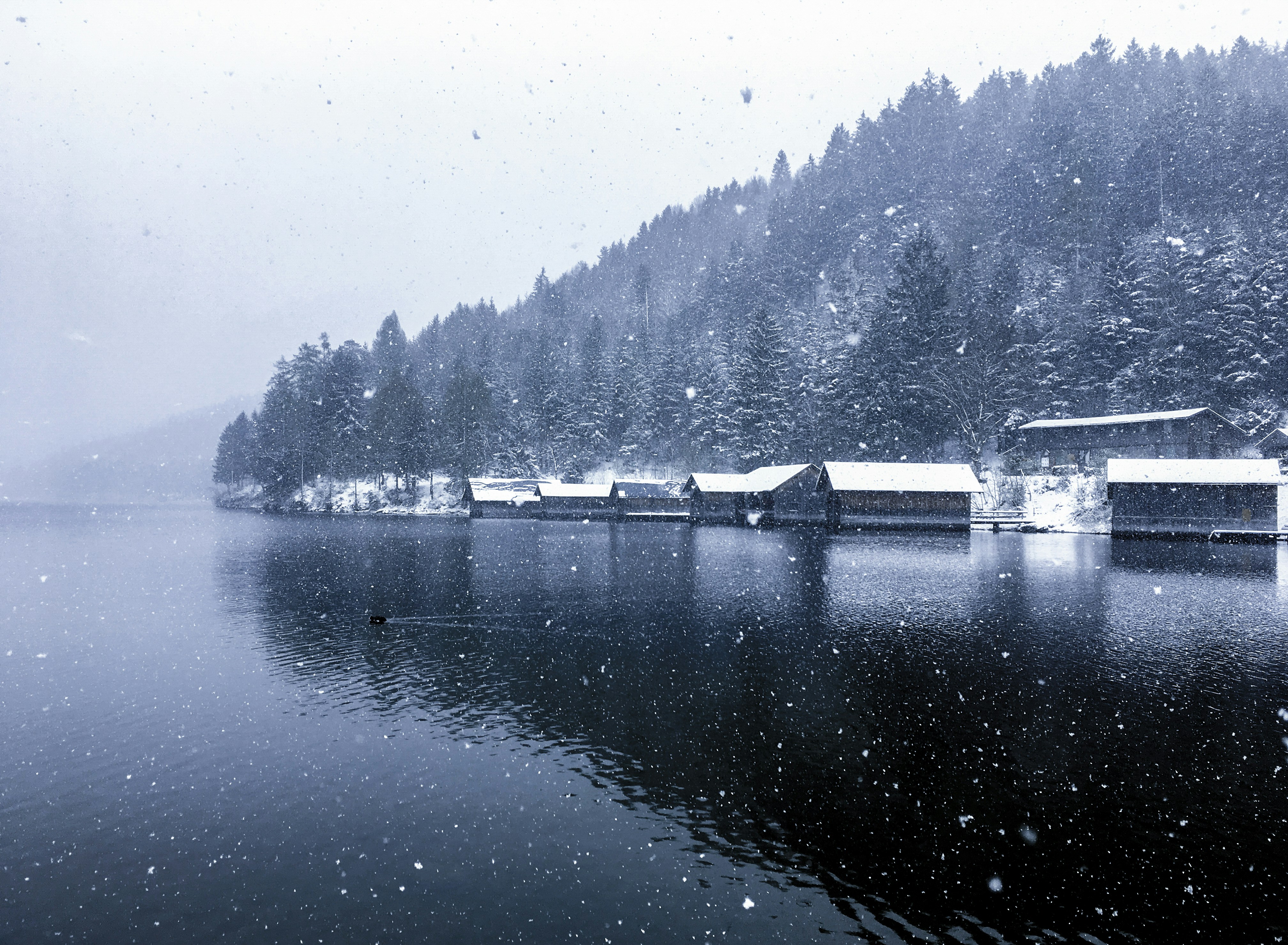 2. Village Beside Body Of Water Covered In Snow Chilly Zoom Background