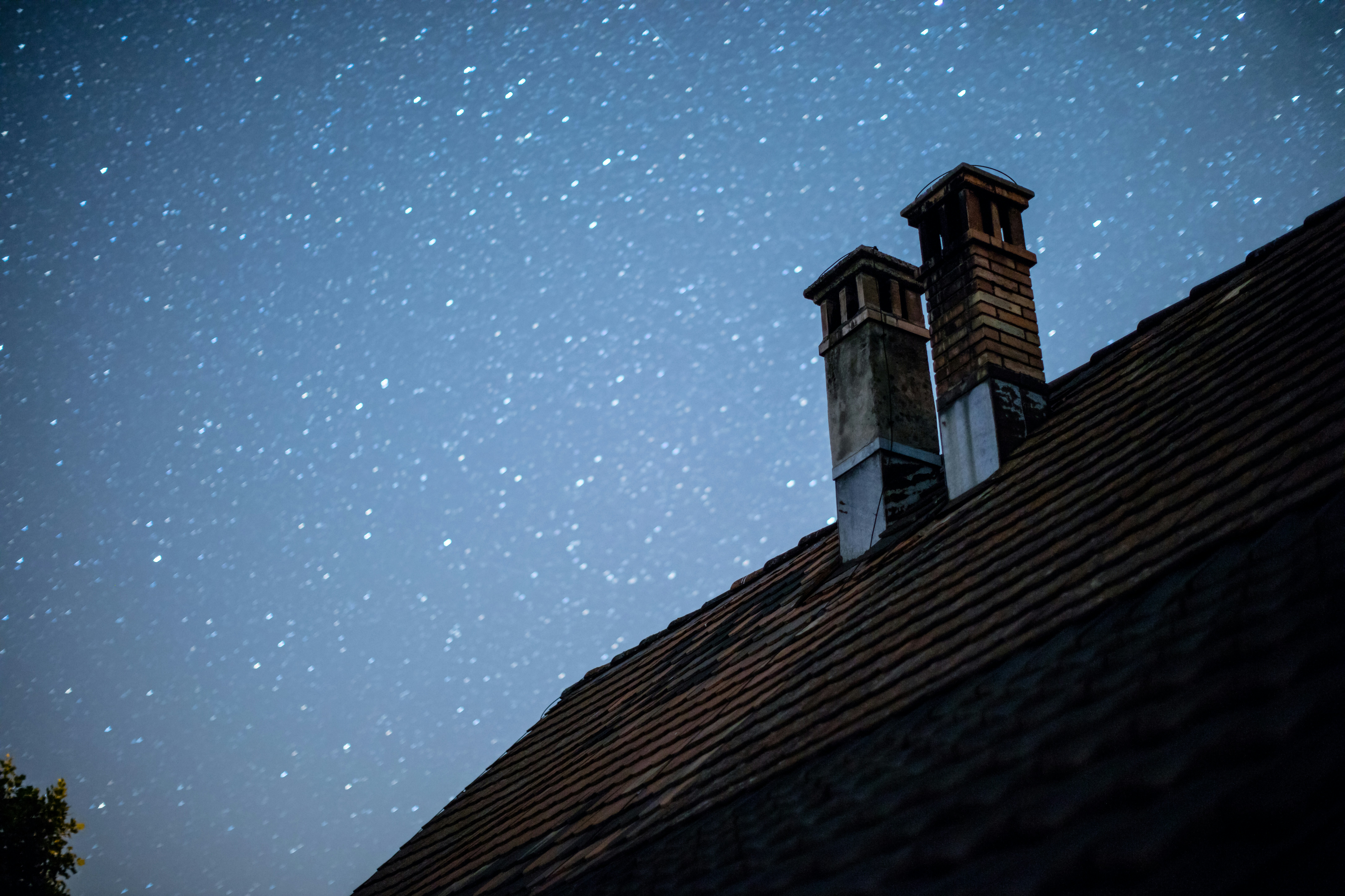1. Brown And Black Wooden House Under Starry Night Chimney Zoom Background