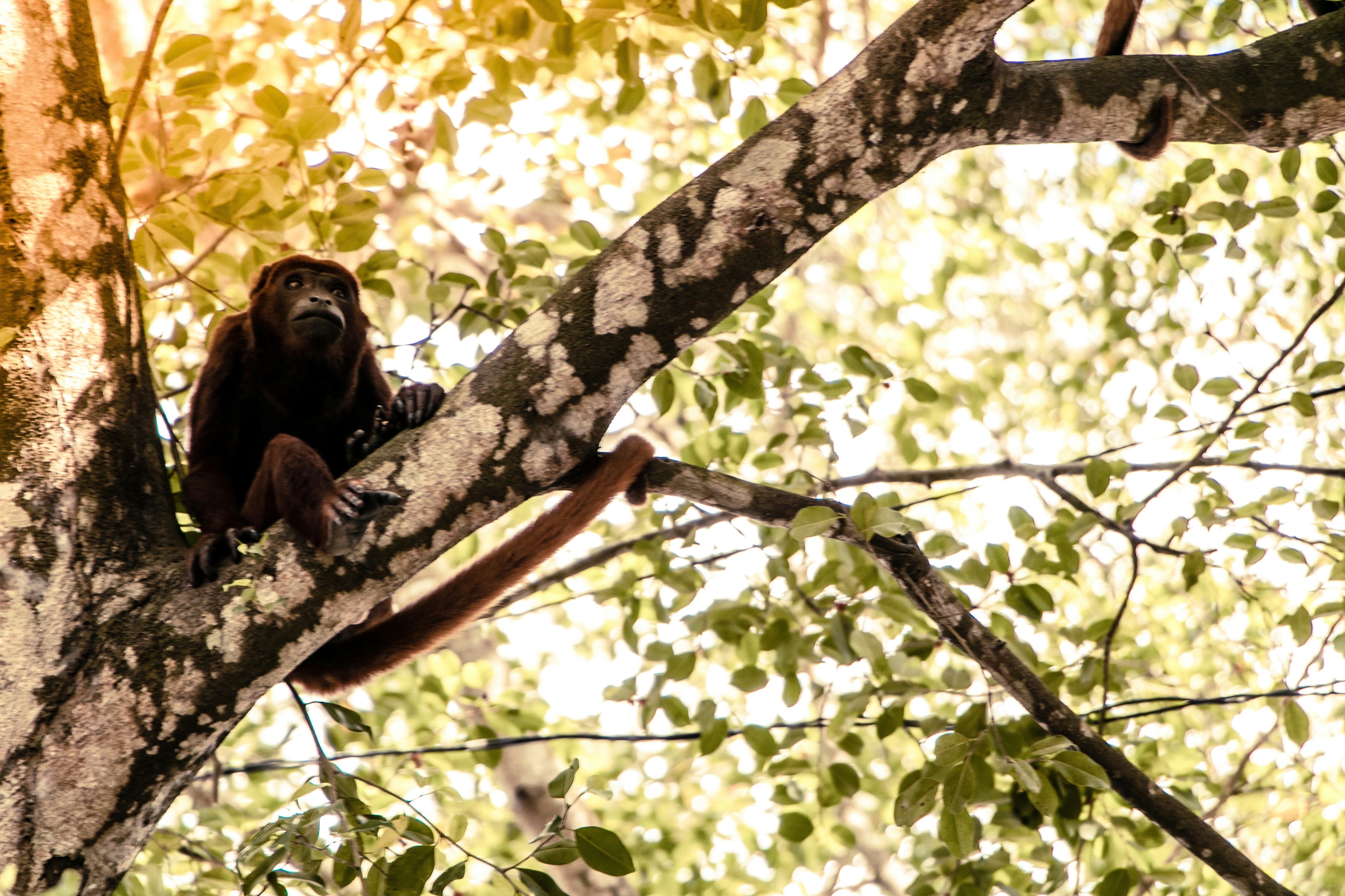 brown monkey climbing on tree crazy zoom background