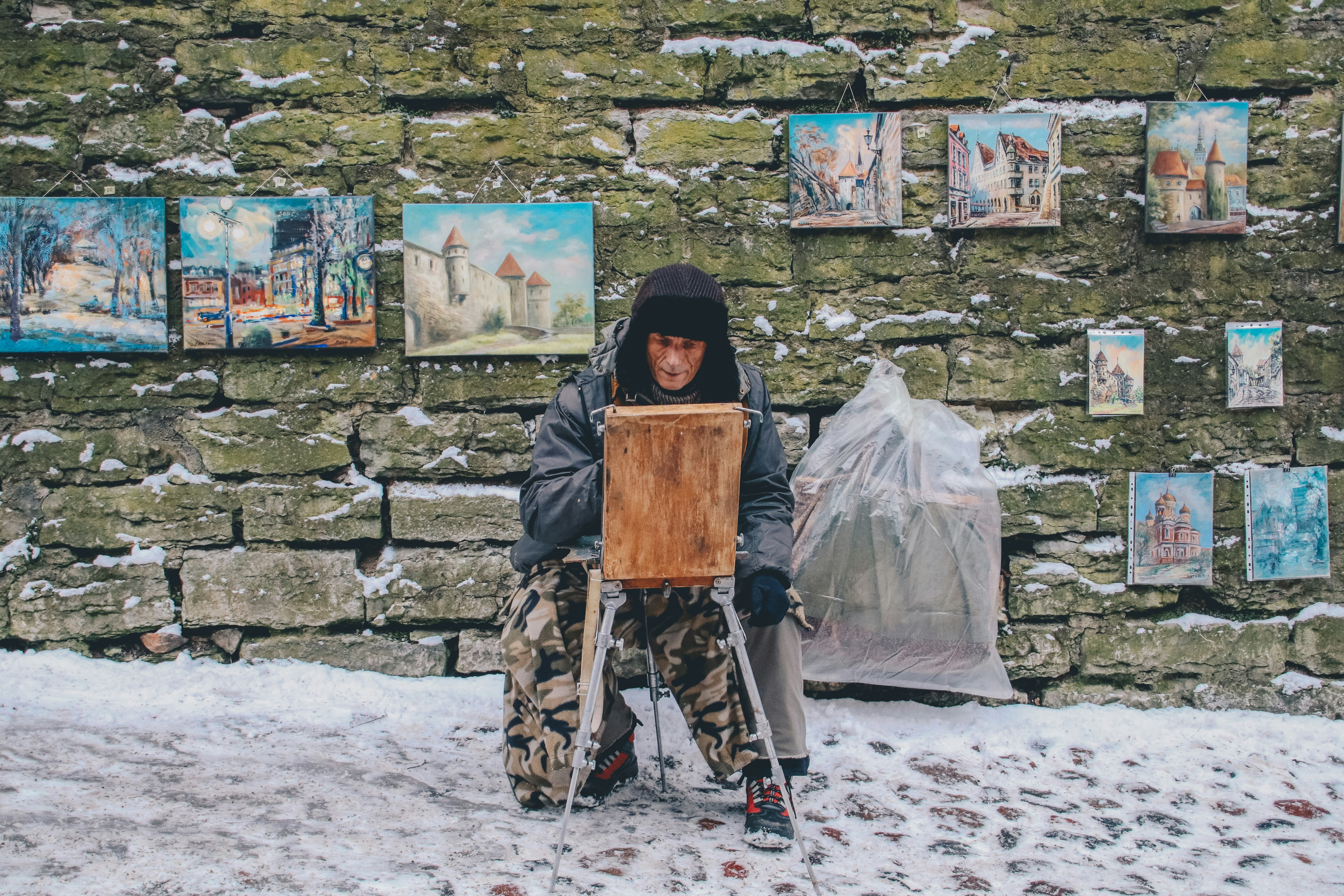 8. Man Painting In Front Of Wall With His Hanging Works Create Zoom Background