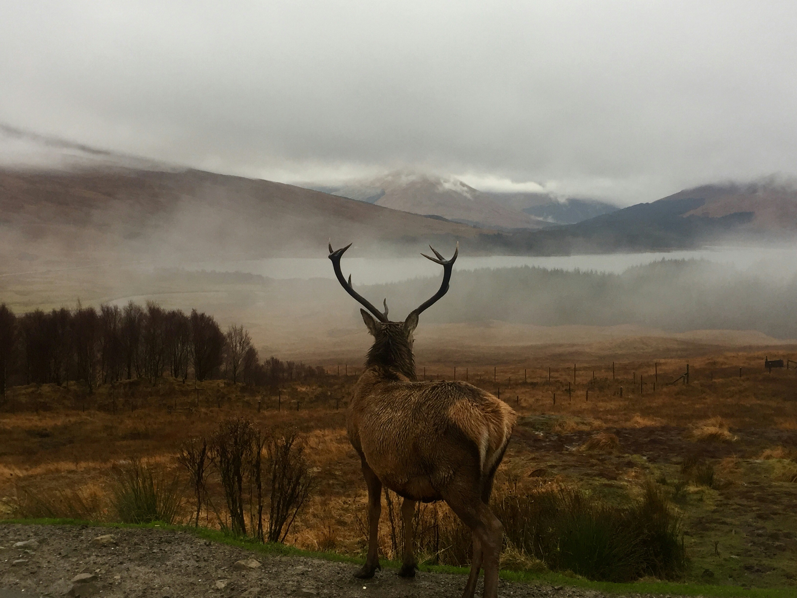 2. Brown Deer On Road Under Gray Sky Deer Zoom Background