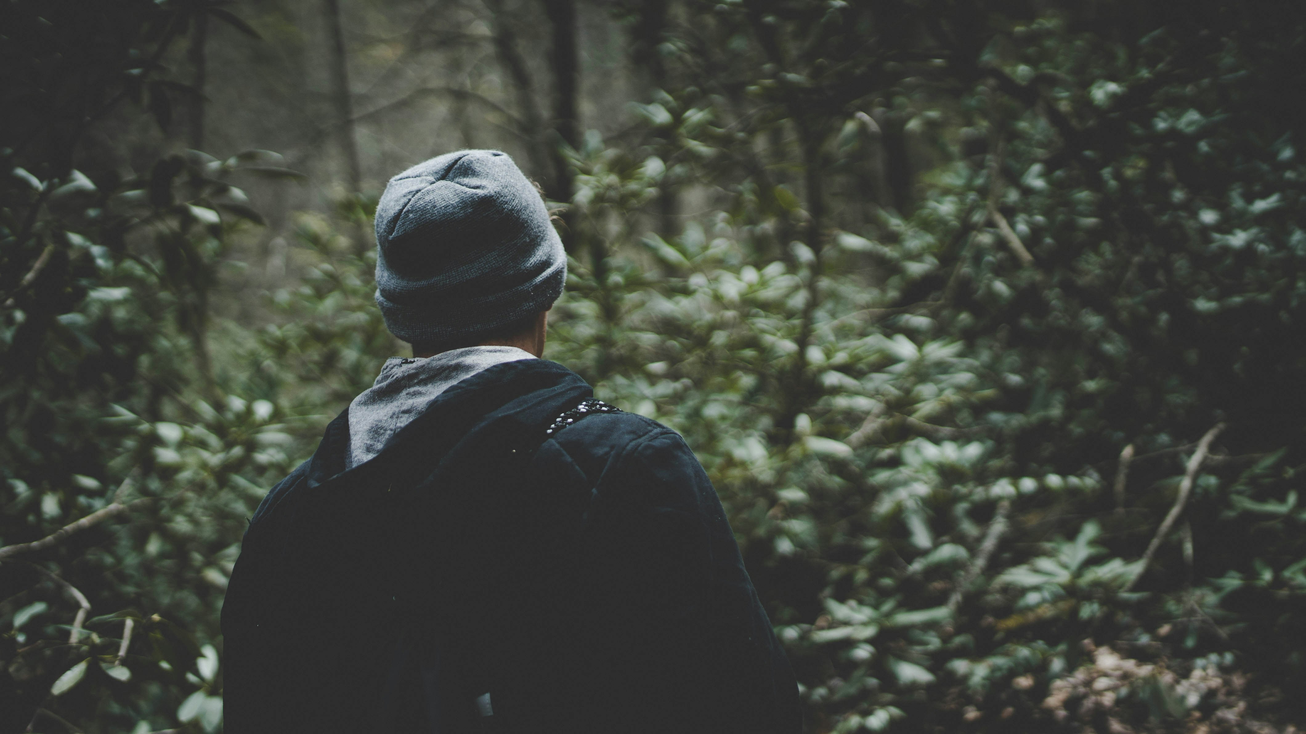 5. Person In Black Hoodie And Wearing Gray Beanie In Forest Faceless Zoom Background